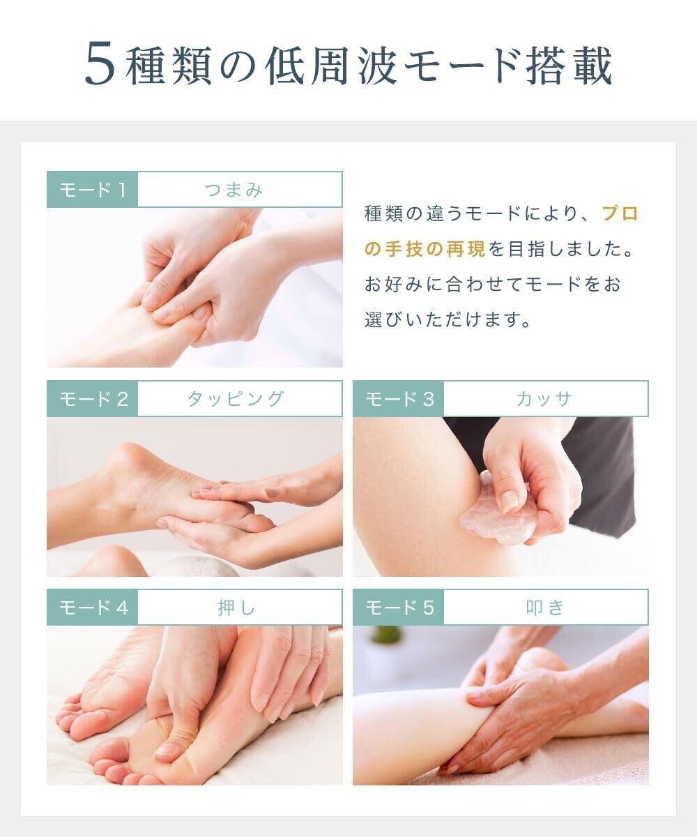 EMS強さレベルUP & EMS品質リニューアル:1~19段階まで調整が可能です。さらに、5種類の低周波モードを搭載。その日の気分や用途によって使い分けができます。
