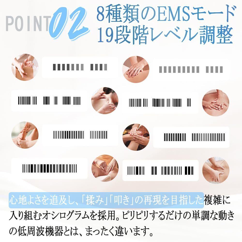 【19段階調整・8枚EMS導電パッド付き】 8種類の刺激モードと19段階の強度調整が可能で、部位ごとに精密にカスタマイズ!優しいゆらゆら振動から、驚くほど強力な刺激まで、多彩な体験をお楽しみいただけます。付属の8枚EMSパッドと1.3mの電源コードで、足裏はもちろん、肩・肘・ふくらはぎ・太ももなど様々な部位に使用可能。コントローラーに直接接続するだけで、簡単にターゲット部位へアプローチ! ※刺激効果には個人差があります。家族みんなでご利用いただけます。 (初心者の方は「モード1・強度1」からのご使用をおすすめします)