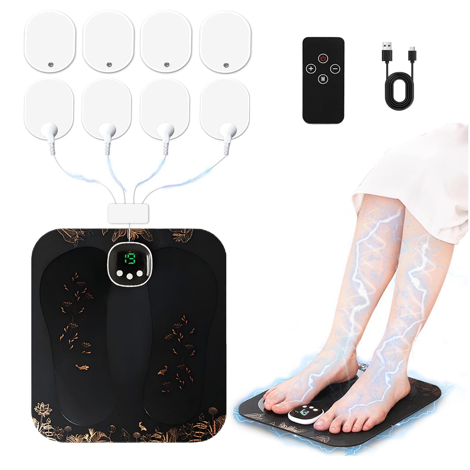emsフットマット 足裏ケア 足リラクセーション フットトレーニング 20分自動オフタイマー パネル&リモコン操作 Type-C充電式 コンパクト軽量設計 ジエル不要 お手入れ簡単 フットケア 男女兼用 全身用 敬老の日 母の日 父の日 誕生日プレゼント 家庭用 8つ全身用パット付き 日本語取扱説明書 | 毎日発送✿はなまる