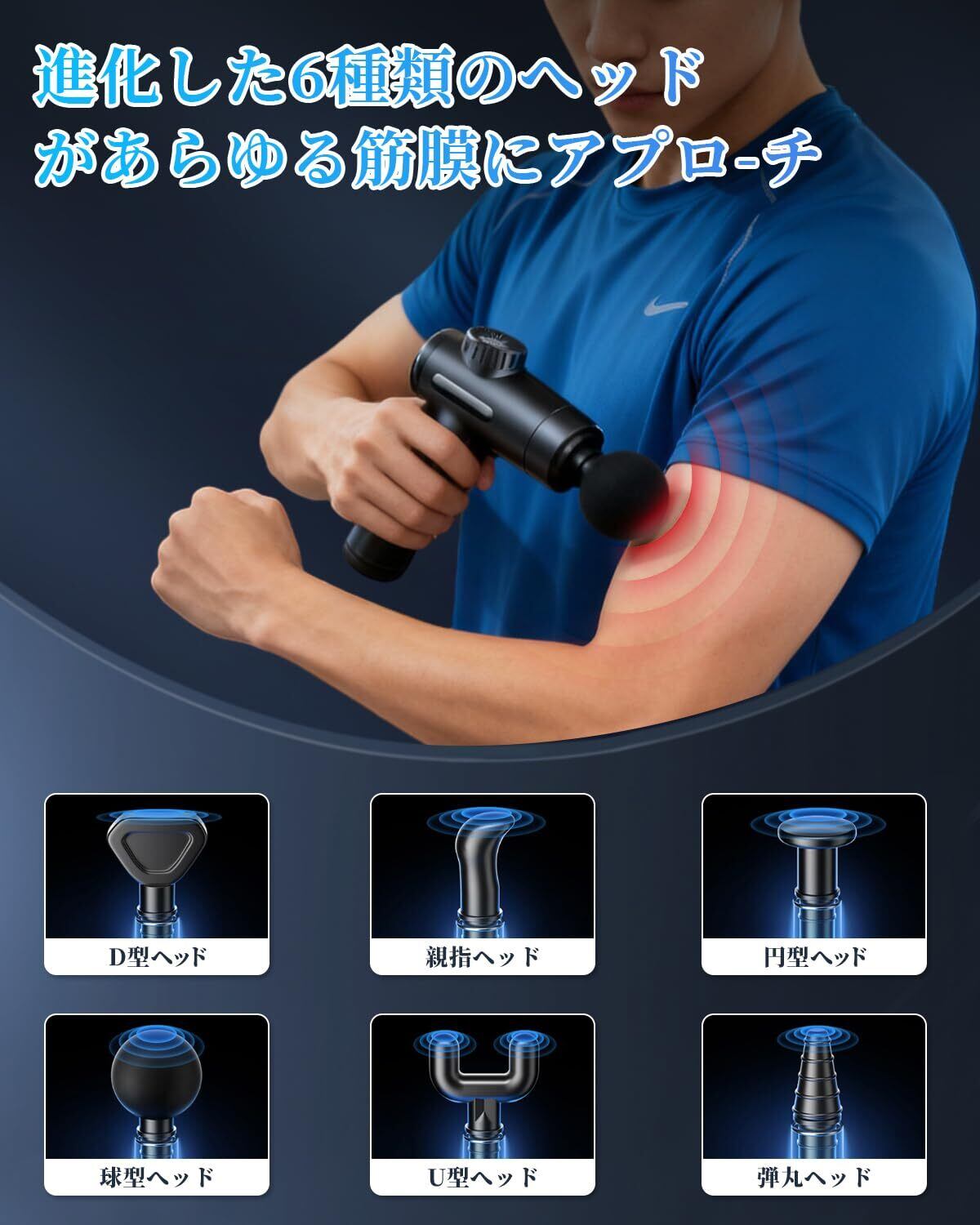 ️【6種類ヘッド付き】6種類のヘッドが装備されており、ニーズに応じて、球型へッド、U型へッド、円型へッド、D型ヘッド、親指ヘッド、弾丸ヘッドのアタッチメントが交換できます。それに、環境に優しい高品質の树脂素材で作られたヘッドは、表面が柔らかく、ソフトな感触で使用できます。さらに、耐久性に優れ、汚れにくく、掃除が簡単です。