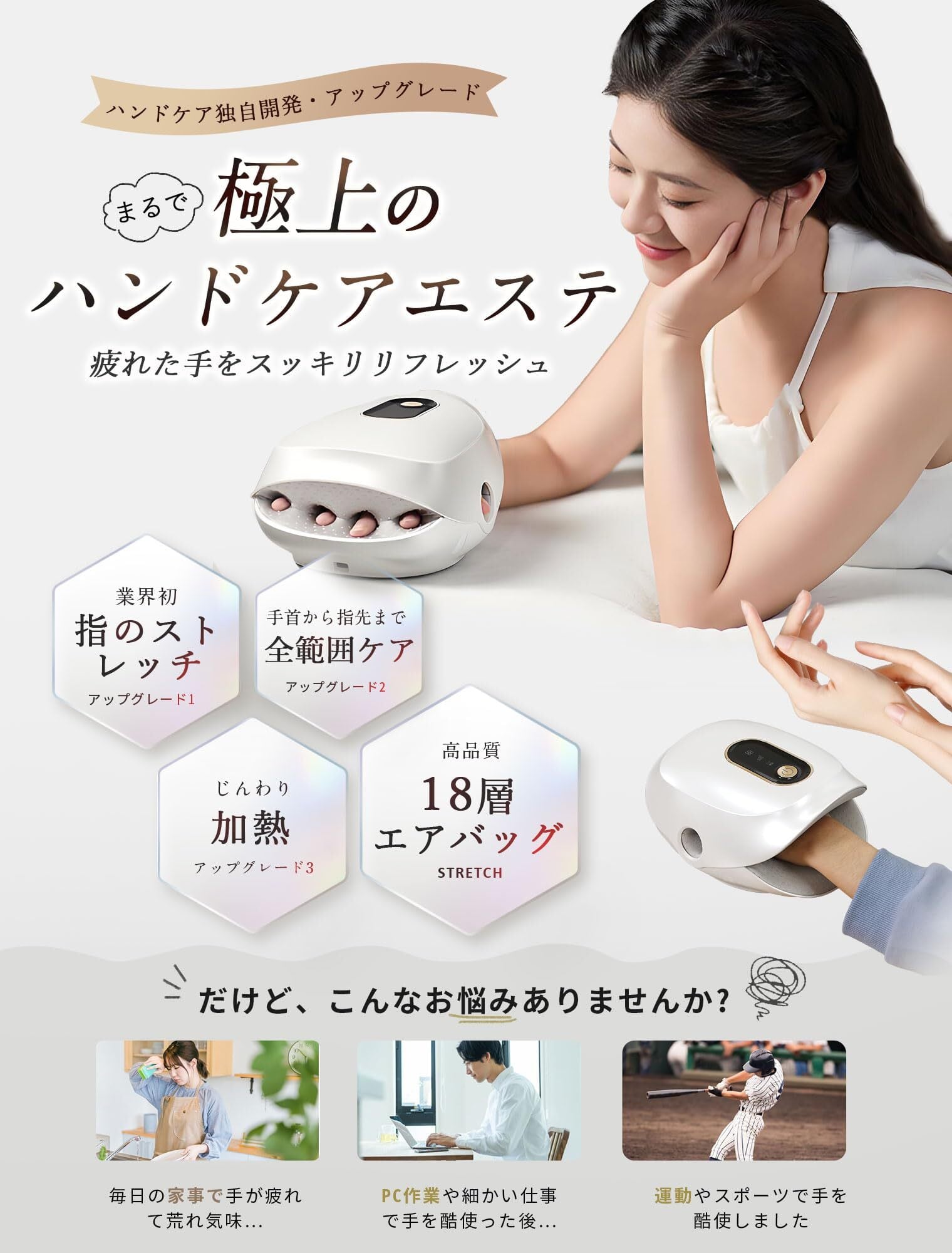 ハンドケア リラクゼーション器 18層エアバッグ 独自開発4D複合揉みコース 加圧&指ストレッチ&温熱 指 手のひら 手首 2500mAh大容量 両手対応 コードレス 男女兼用 家庭用 誕生日 母の日/父の日/敬老日/クリスマス プレゼント 巾着袋付き 日本語説明書 シャンパンゴールド | 毎日発送✿はなまる