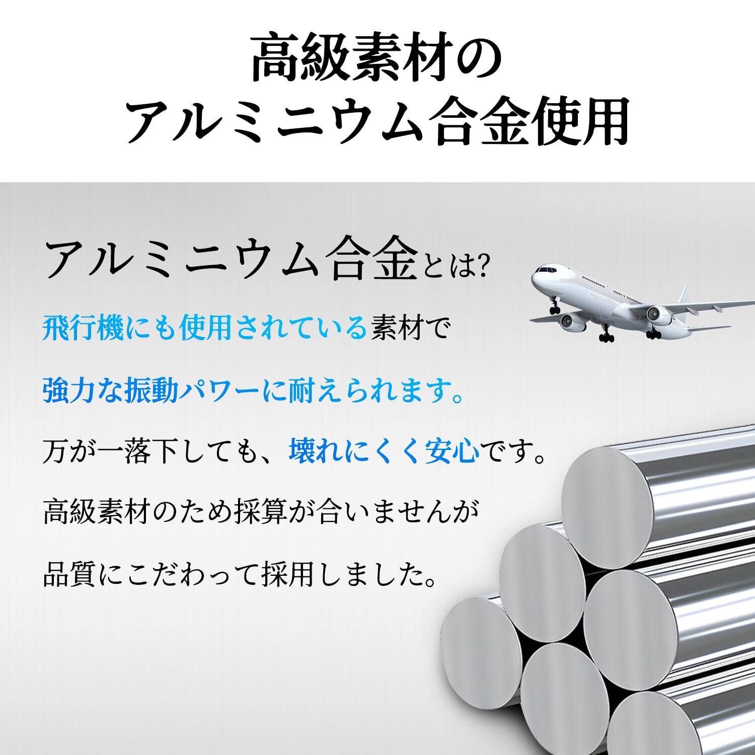 【全アルミ合金ボディ、衝撃に強い】 この筋膜リリースガンは、全アルミ合金ボディを採用しており、洗練されたクールな外観を持っています。金属素材により強度と耐久性が確保され、長寿命を実現しています。金属のボディが高級感を演出し、優れた選択肢となります。プラスチック製のきんまくリリース 電動ガンと比較して、より頑丈で安定性に優れた選択肢です。環境に優しくリサイクルが容易な点も魅力です。さらに、金属の冷たい触感は使うたびに心地よく、アルミニウムは熱を効果的に伝導し、リリースガンの過熱を防ぐのに役立ちます。