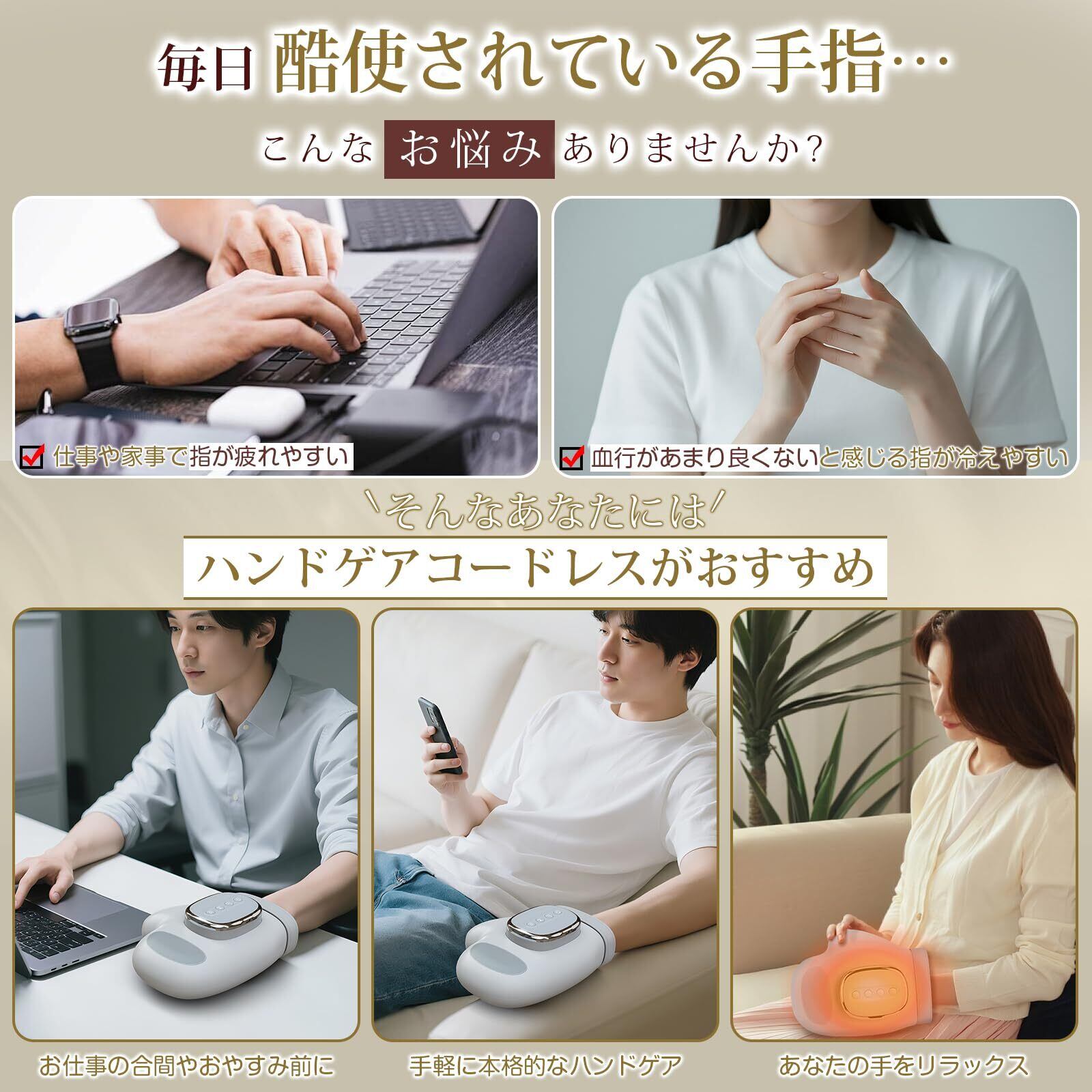 ハンドケア リラクゼーション器 5段階加圧調整 エアバッグ 両手対応 指 手のひら 温熱 ツボ押し 手の休憩 保湿 コードレス 男女兼用 バレンタインデー プレゼント 誕生日 母親 父親 女性 男性 母/父の日 ギフト 収納袋付き 二年メーカー (ウォームグレー) | 毎日発送✿はなまる