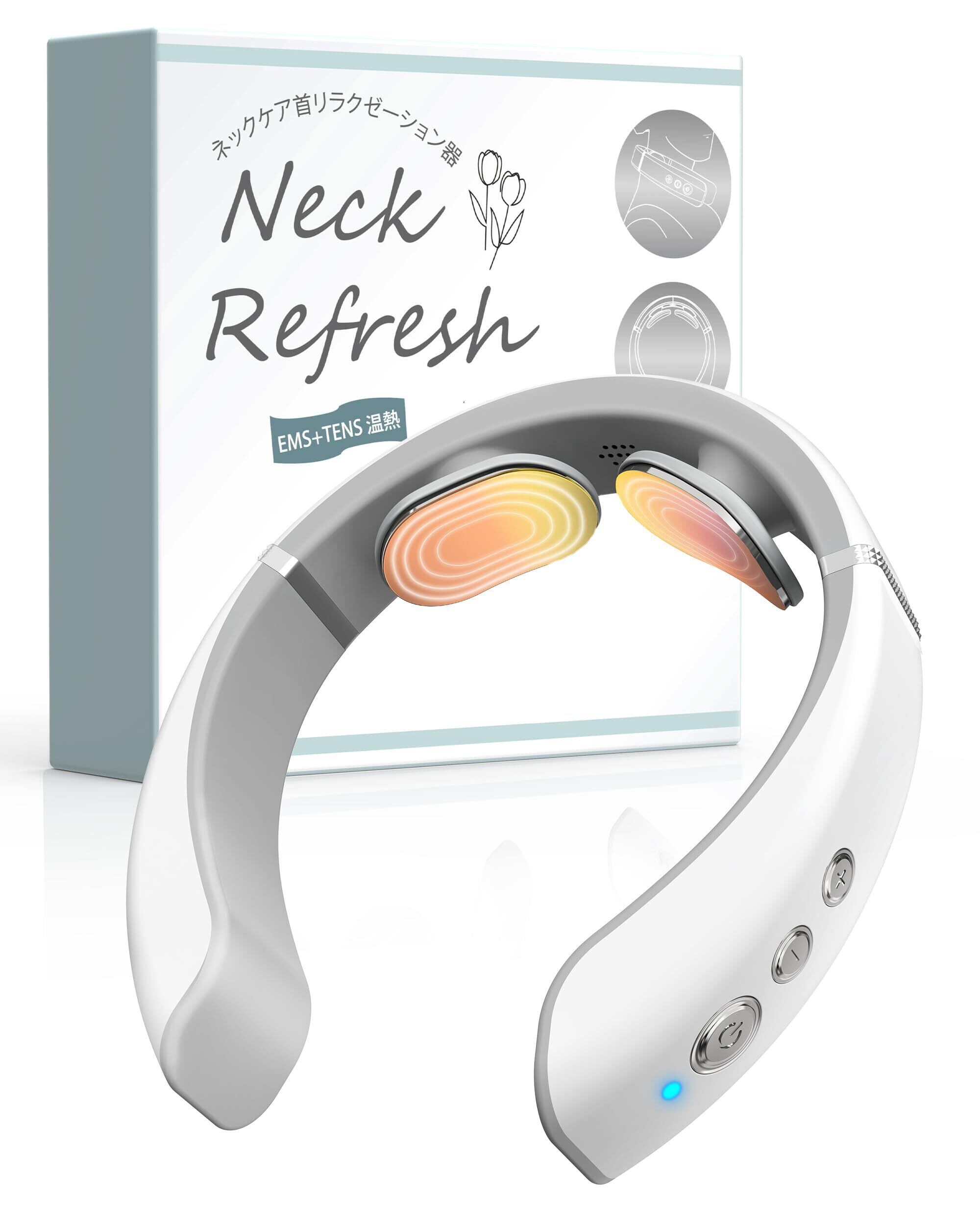 Juliyas ネックケア 首 リラクゼーション器 EMS×TENS W効果 振動 首元ケア ホットケア 10種類のモード 19段階強度調節 静音・音声ガイド切替 メモリー機能 温熱 ホットケア 軽量108g コンパクト ネックリフレッシュ 母の日 父の日 誕生日 プレゼント 日本語音声 (ホワイト) | 毎日発送✿はなまる