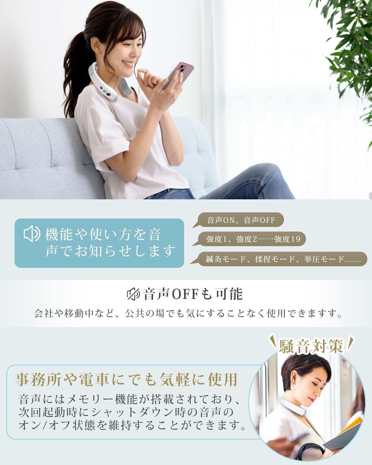 ️【静音モード&音声ガイド切替可能|高齢者に優しい】 日本語音声ガイド対応だから、操作中のモードと強度を音声でリアルタイム通知!ボタンも大きく、初めての方や高齢者の方でもひとりで簡単に使えます。マイナスボタンを3秒長押しで消音モードに切替可能!前回の音声ON/OFF設定は自動で記憶されるので、外出先でもストレスフリー。(電車・オフィスなど静かな場所でも気兼ねなくお使いいただけます)