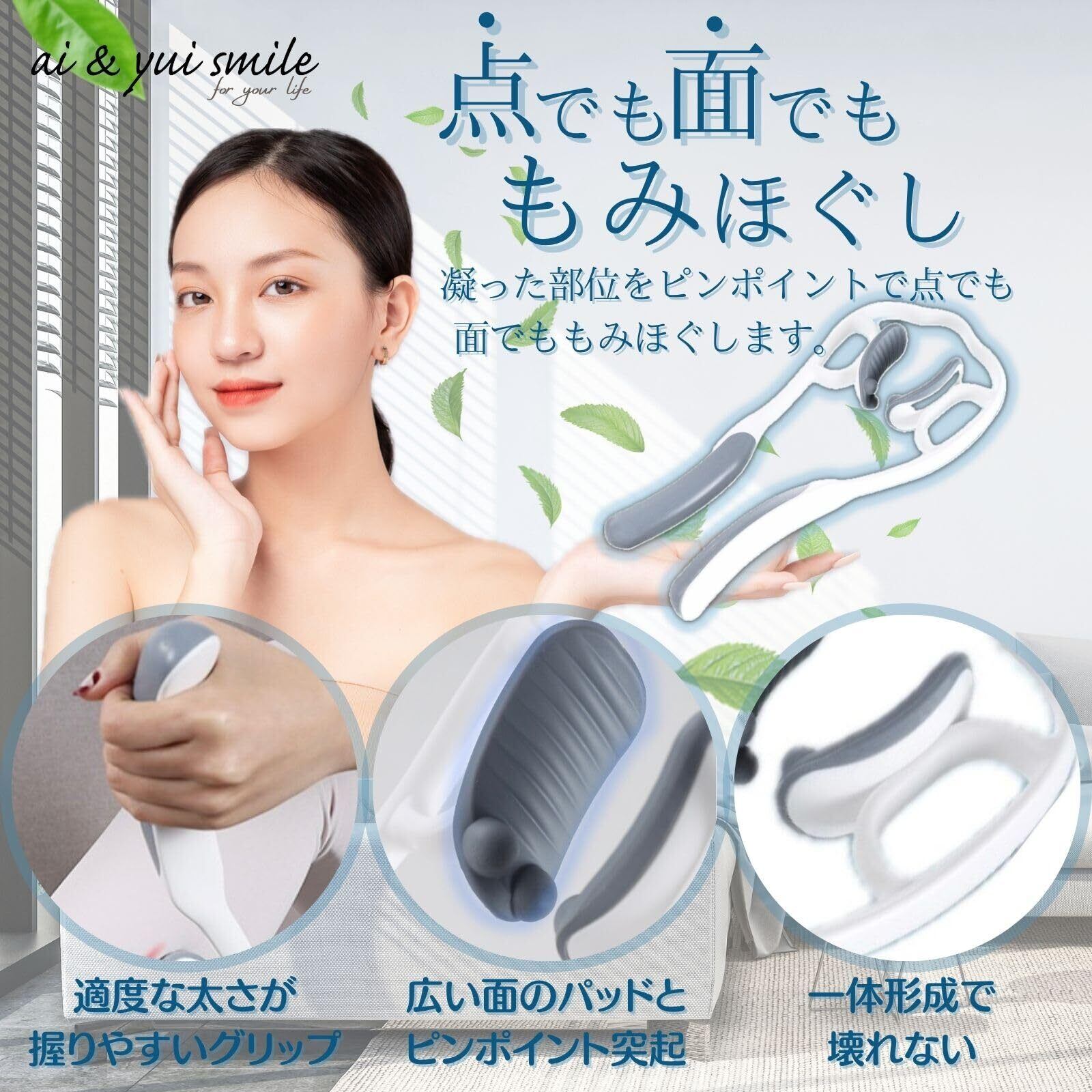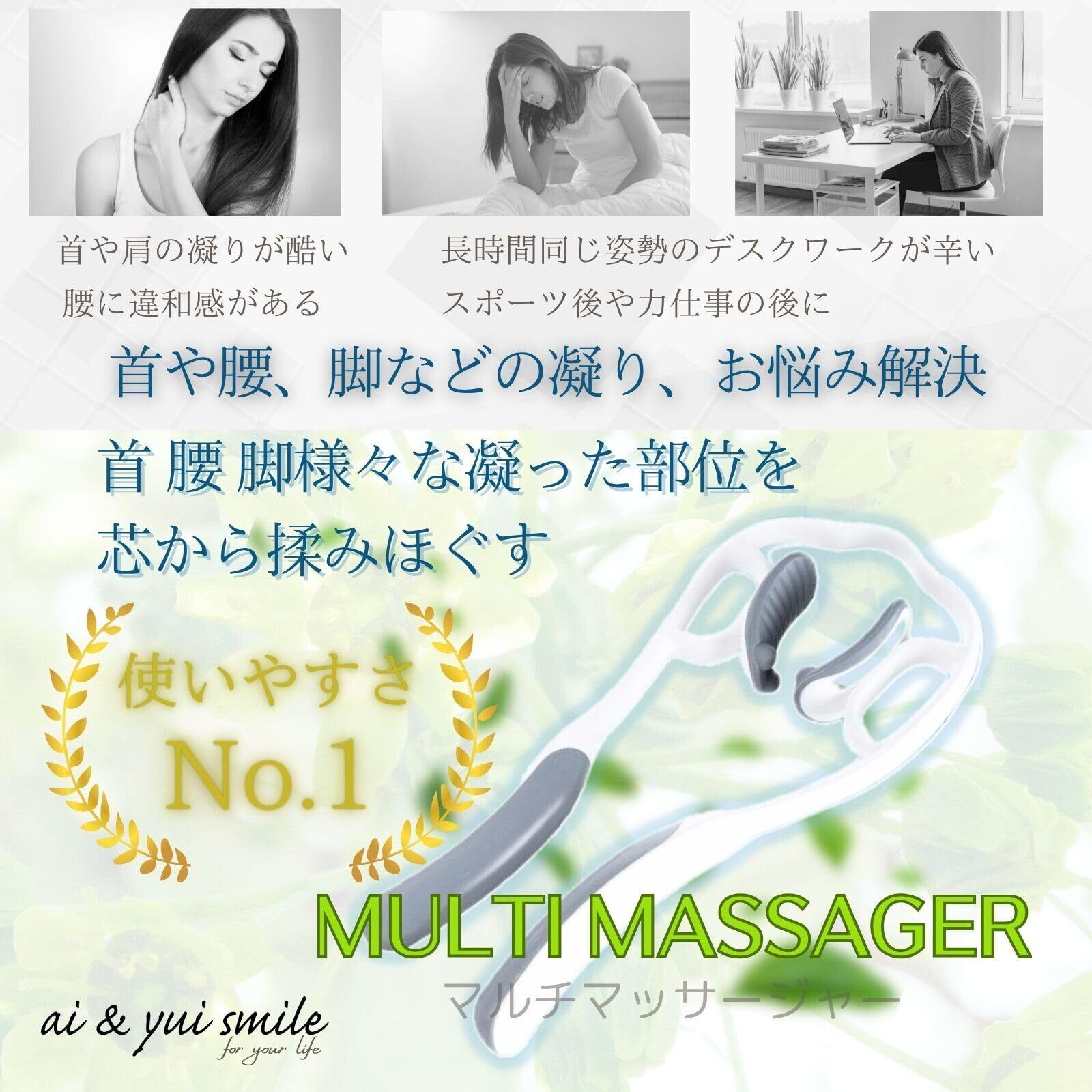 ai & yui smile 首 マッサージ 肩コリ解消グッズ 肩凝り解消グッズ 首こり ネックマッサージャー ツボ押し ストレッチ (白/グレー黒)