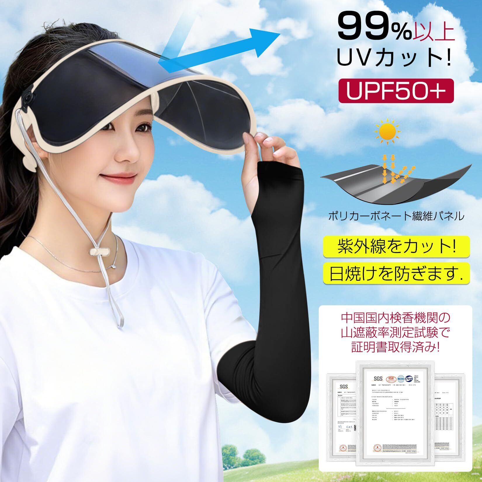 折りたたみ機能追加 サンバイザー レディース 女性 uv カット レインバイザー 自転車 帽子 UPF50+ 紫外線対策 日焼け防止 帽子 折りたたみ式 収納便利 通勤 アウトドア 晴雨兼用 アームカバー付き