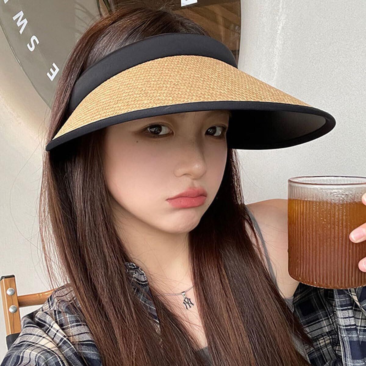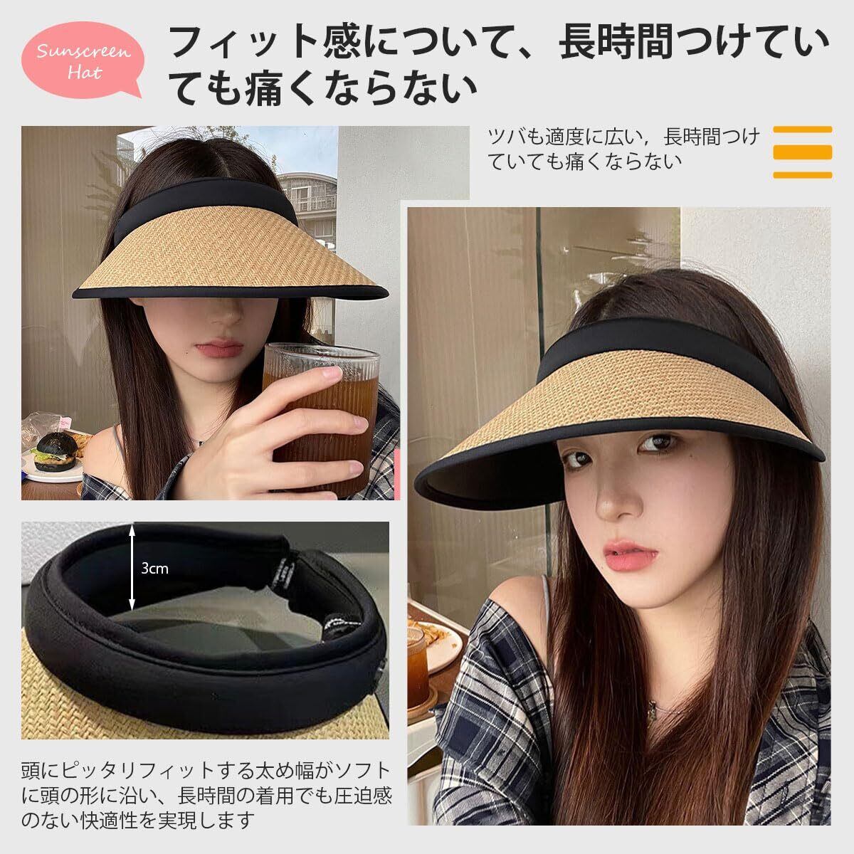 サンバイザー 麦わら レディース 紫外線 UV 日焼け対策 つば広 カチューシャタイプ飛ばない アウトドア 小顔効果 ゴルフ テニス スポーツ 自動車 散歩 旅行 登山 あご紐付き