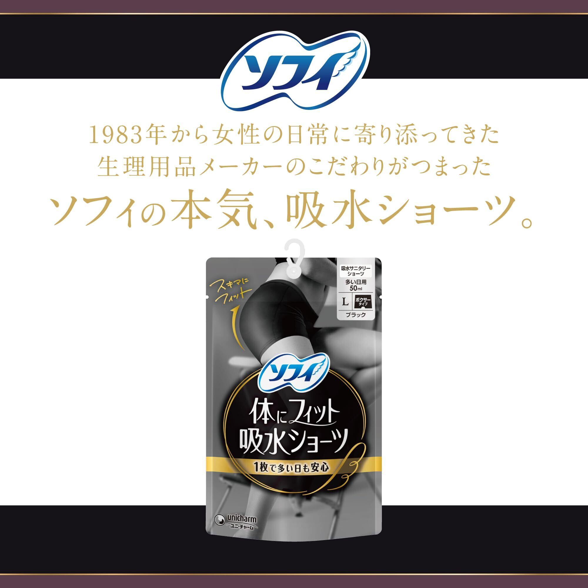 ソフィ 体にフィット吸水ショーツ ボクサータイプ 多い日用 ブラック Lサイズ 1枚入