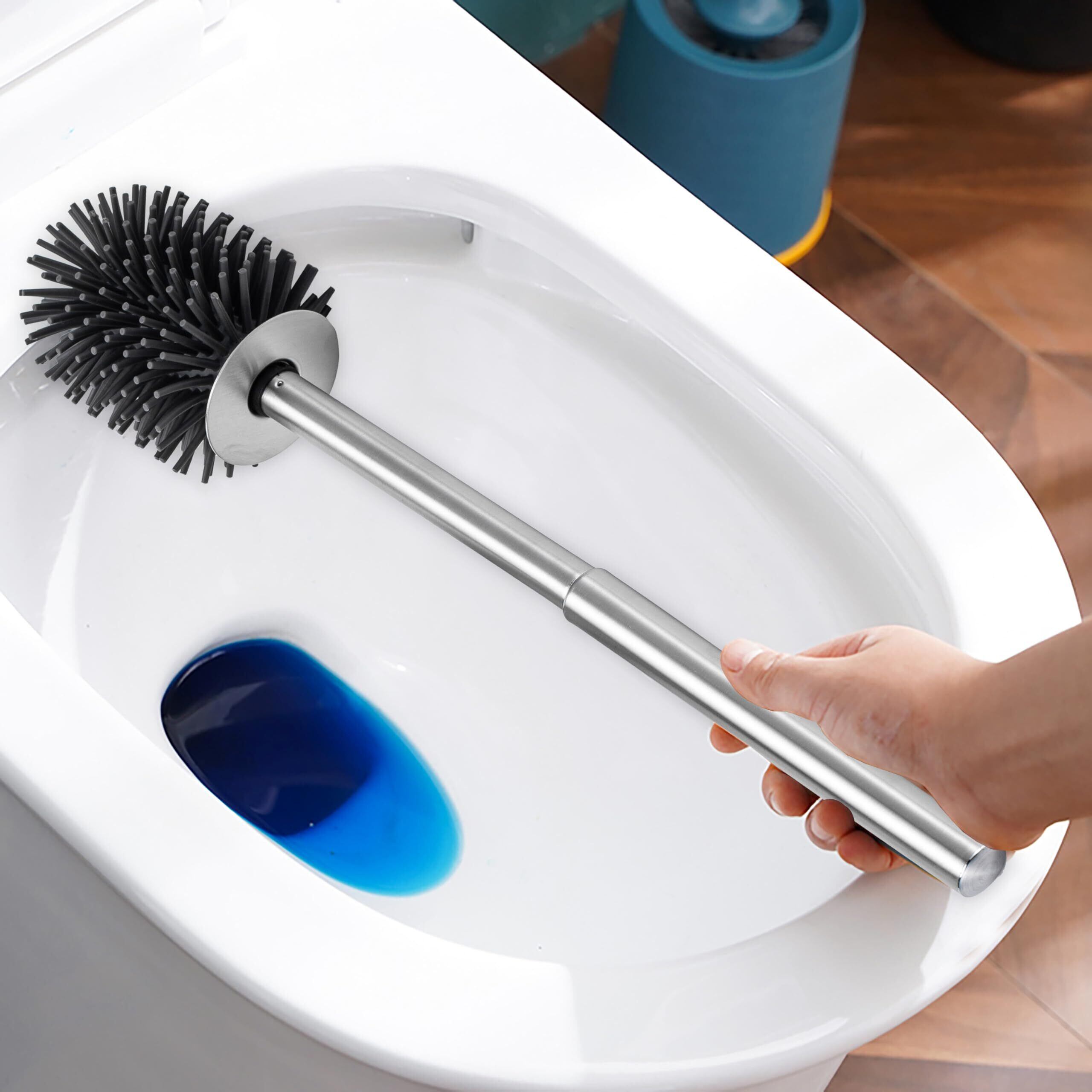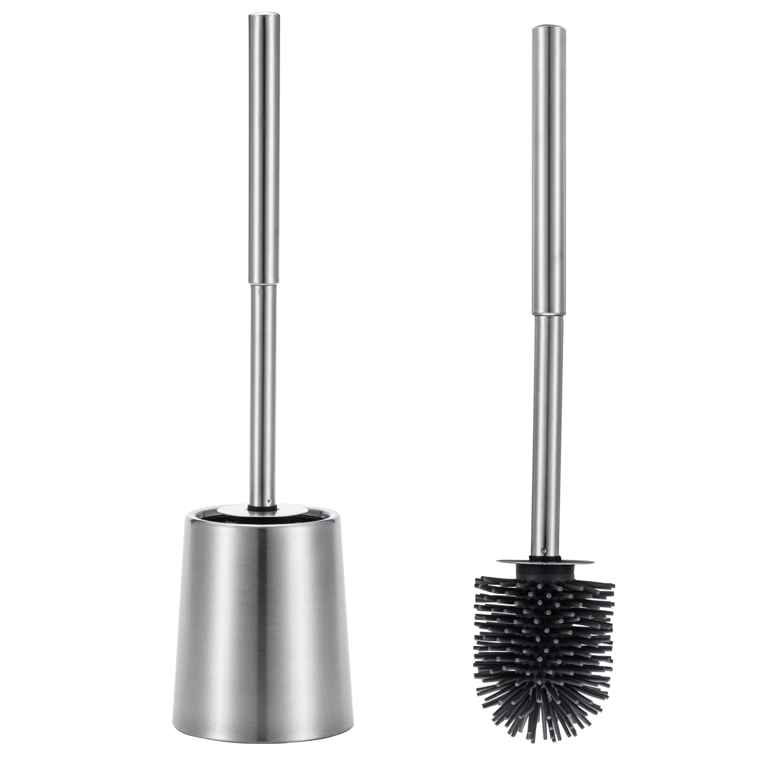 SUS304 ステンレススチール製 トイレブラシとホルダー 2層構造ケース付き シリコンブラシ トイレブラシセット トイレクリーナー トイレ掃除 便器清掃 バスルームブラシ クリーニングブラシ ケース付き シルバー | 毎日発送✿はなまる