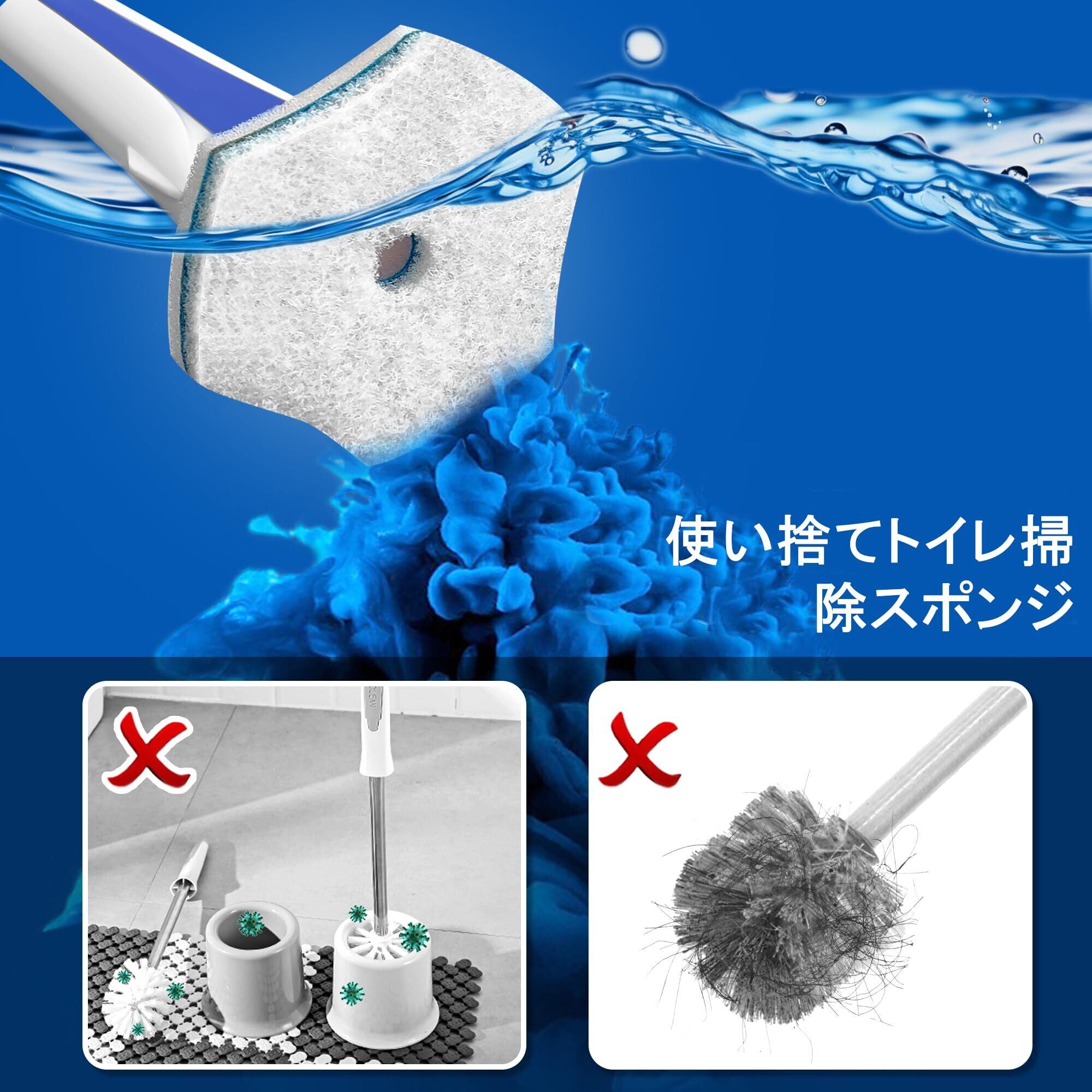 JEHONNトイレブラシ使い捨てと付け替え用 (付替品48個),壁掛け使い捨てトイレブラシシンクバスタブ洗面器モッププール用(青)