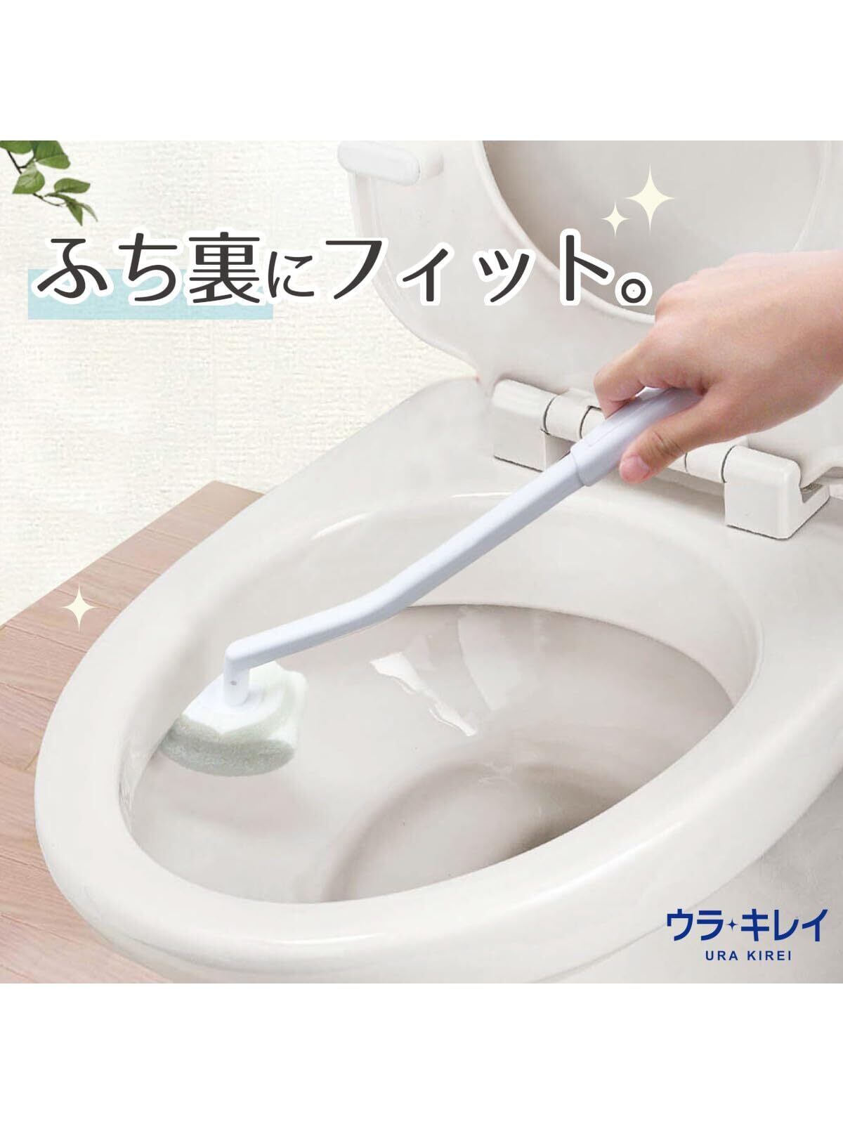 ●「ウラキレイブラシ ケース付 ホワイト」は、フチ裏にフィットする形状で、キズをつけにくい不織布タイプのトイレ用ブラシとブラシ受けです。