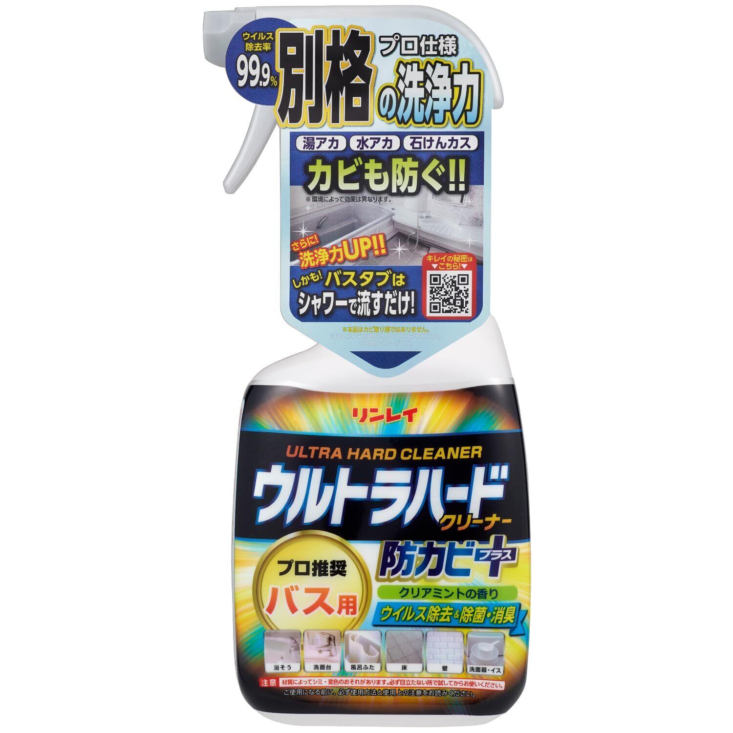 超強力洗剤「ウルトラハードクリーナー バス用」に防カビ機能が搭載された次世代バスクリーナー。こびりつき湯アカ、石けんカス、さらに見えないカビの原因菌に!
