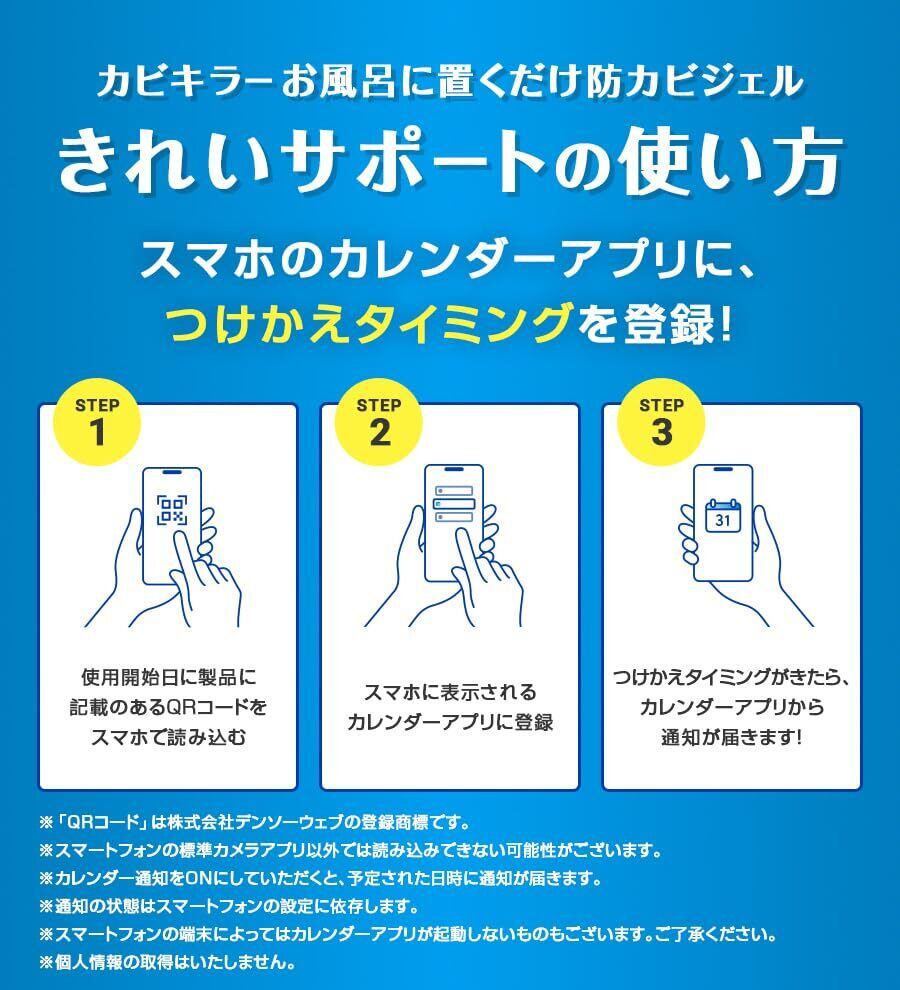 ⑤防カビ効果持続のため、6週間ごとに新しいカートリッジに取り替える。(替えの箱を開けて手順➀から同じ方法で使用する)