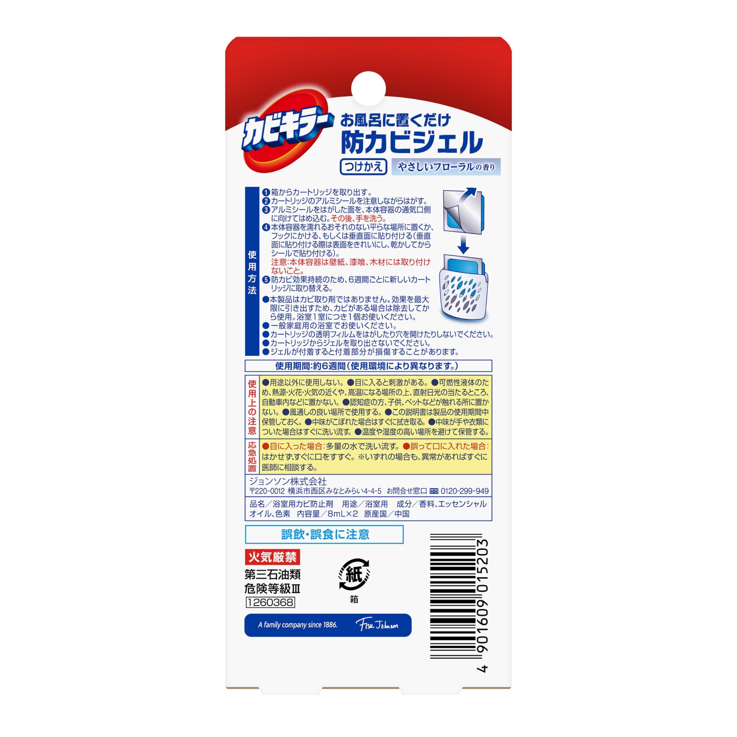 【カビキラー お風呂に置くだけ防カビジェル やさしいフローラルの香り 本体+替え2個(本体容器+替え3個)の商品詳細】