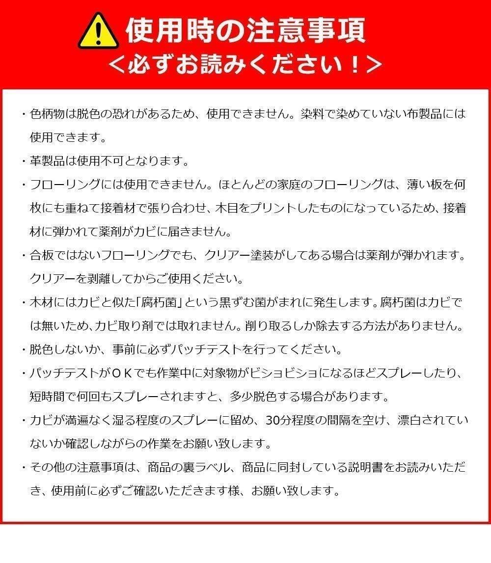 【本製品について】木材、畳、布などのカビ取り剤です。軽度のカビであれば最大2倍まで希釈しても除去できます。カビ取り後は乾燥すると成分が蒸発します。