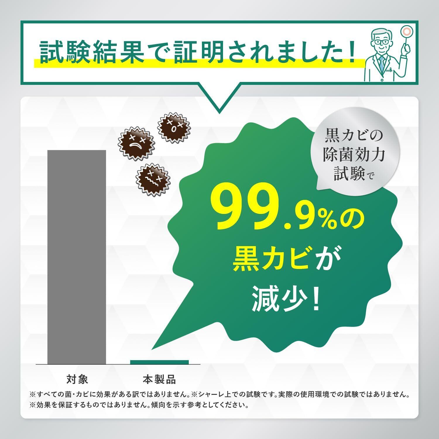 ■業界初のナノテクノロジーで強力除カビ!業界初の「カビ取り洗浄剤×ナノテクノロジー」で、20年以上の実績ある国内メーカーが開発。しつこいカビを根本から分解除去し、小さな胞子まで99.9%取り去るパワフルさが魅力です。