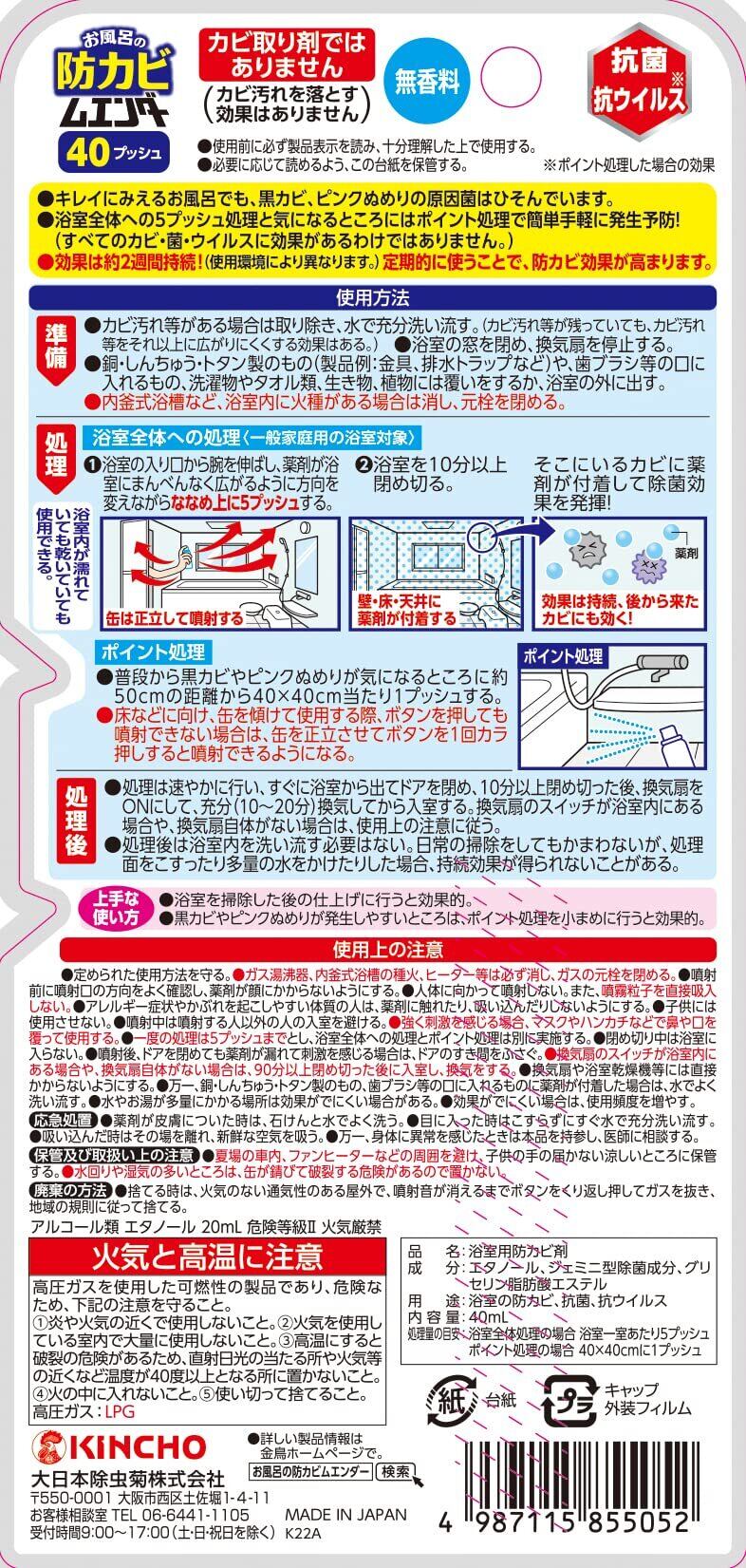 お風呂の 防カビ ムエンダー 浴室 まるごと カビ予防 ピンクぬめりの発生予防 40プッシュ 無香料