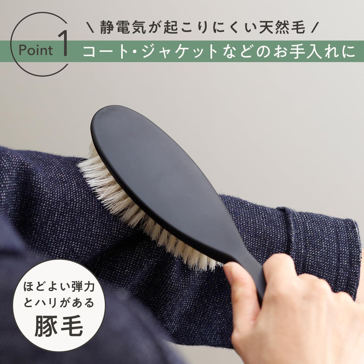 【天然毛のブラシ】ブラシは静電気が起きにくい豚毛を使用。ご使用の際にはこすらず、手首のスナップを効かせて生地のホコリを軽く払い飛ばすようにブラッシングしてください。