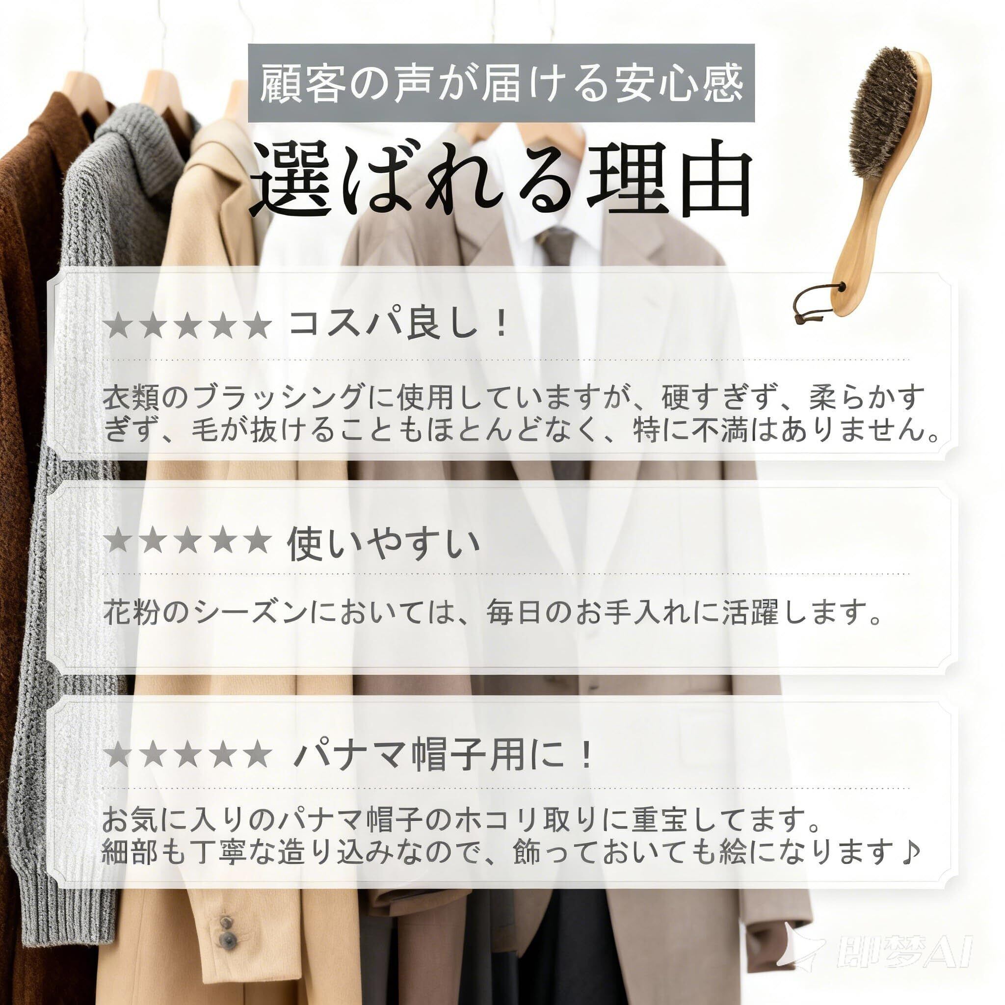【洋服ブラシ 花粉や埃除去】革カバン、革靴など革製品の保養に表面のクリーンと保養にできる、光沢も出る。馬毛ブラシの清潔力は強いし、馬毛ブラシは細かいところまで入り、花粉や埃が落ちる、洋服ブラシとしてソファー、布団、靴などにもきれいに掃除できます。高品質と機能を備えました。