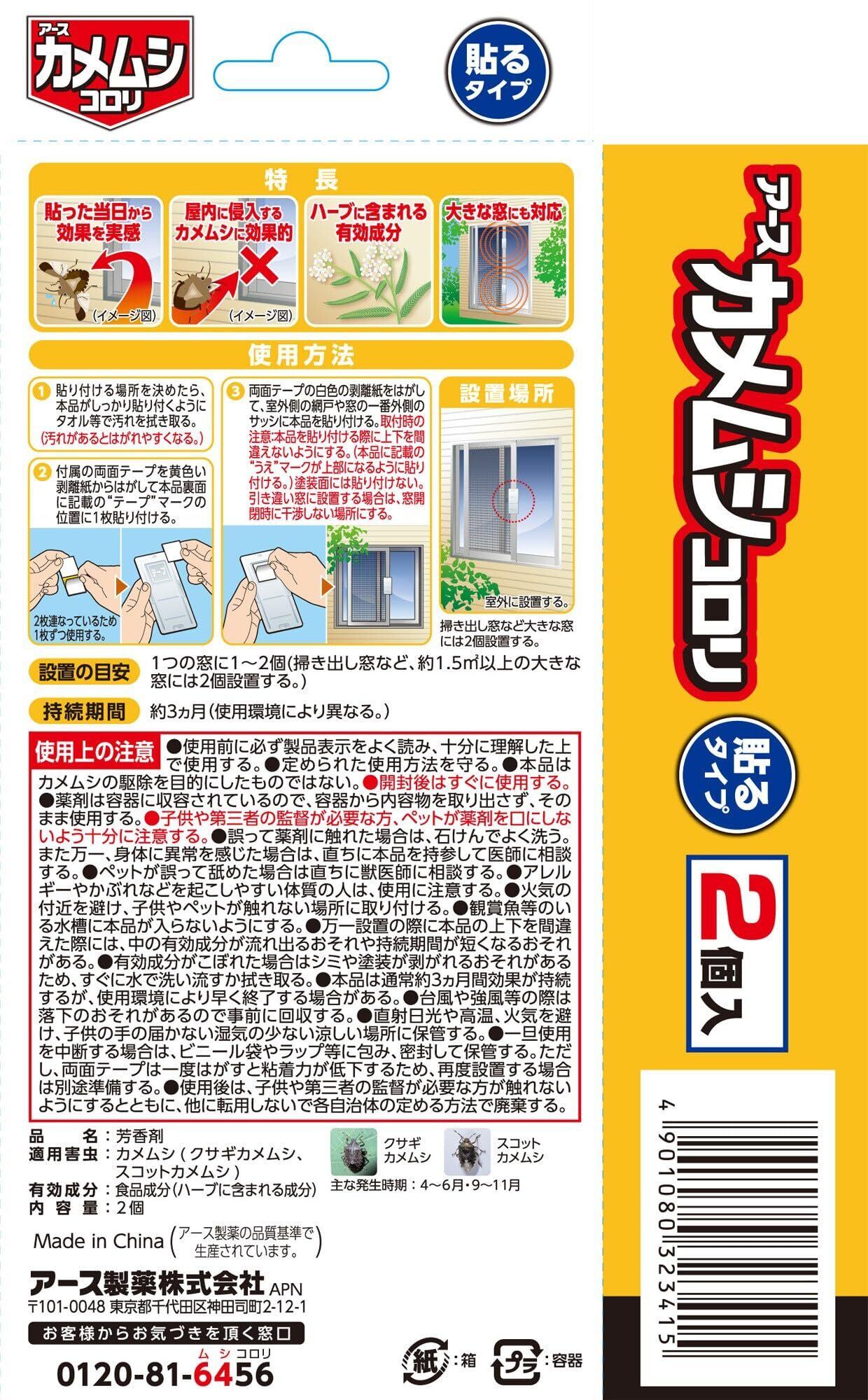 アース製薬 カメムシコロリ 貼るタイプ 2個入 カメムシ対策 窓 あみ戸 侵入予防 忌避 防虫 むしょけ 屋外 亀虫 害虫対策