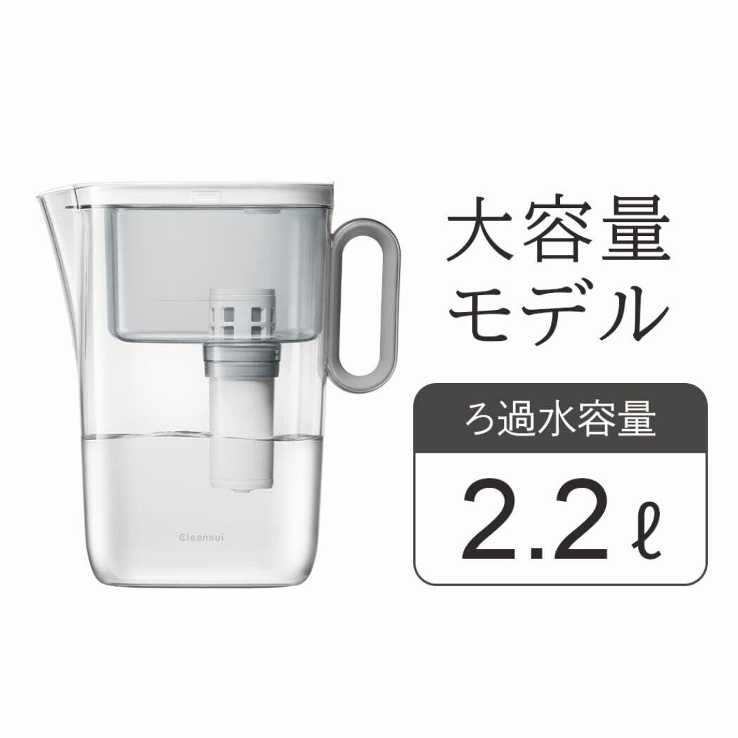 業界唯一のダブルフィルター搭載。交換時期の目安:3ヶ月(1日2L使用の場合)、ろ過水容量:2.2L(全容量:3.6L)