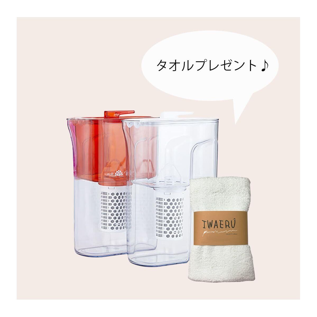 ガイアの水 和蓮ポット ポット型浄水器 PFOS/PFOA除去対応 BPAフリー IWAERUタオルセット (オレンジ)カートリッジ付き