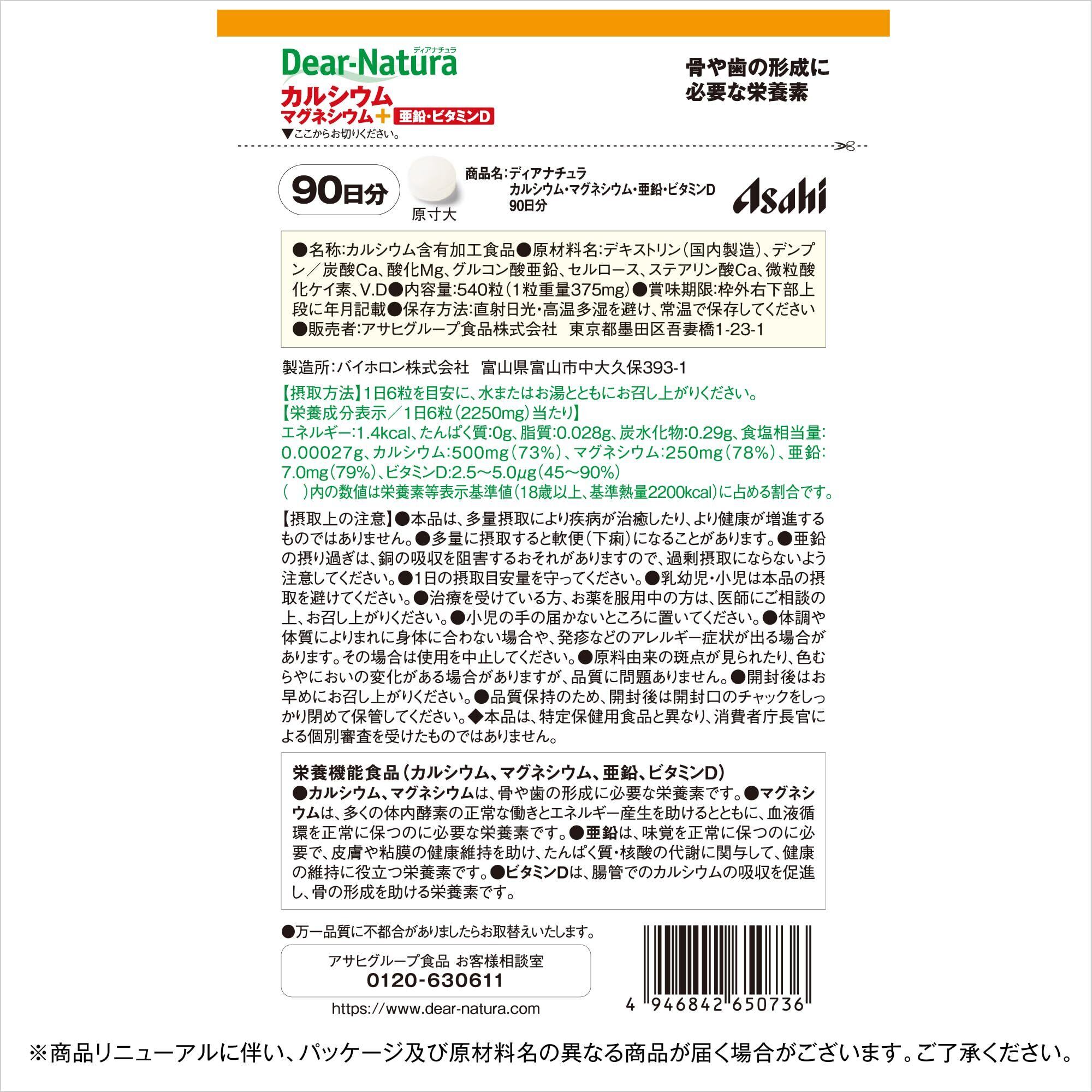 ディアナチュラ カルシウム・マグネシウム・亜鉛・ビタミンD 540粒(90日分) アサヒ サプリ Dear-Natura 国内工場で生産 パウチ