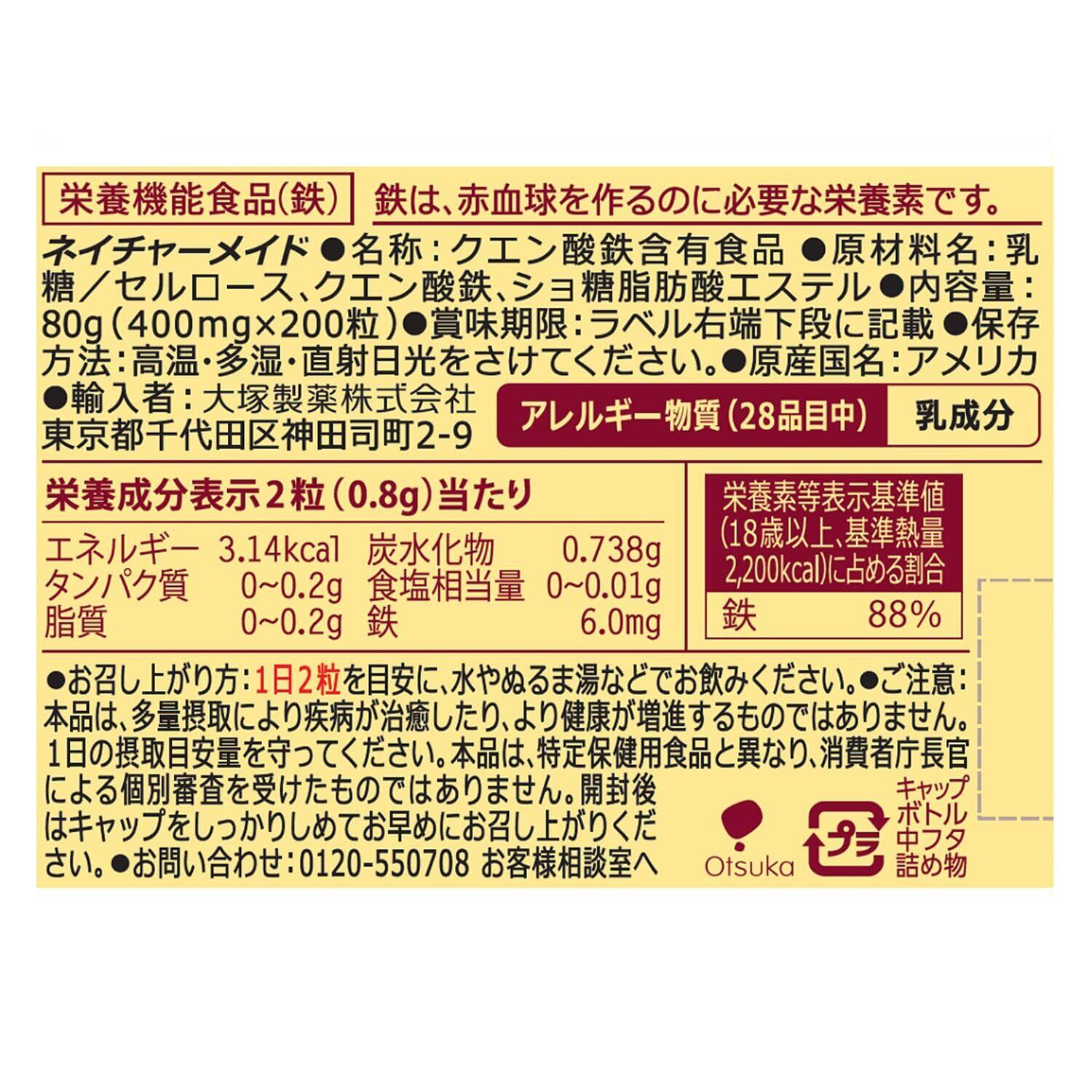 NATUREMADE(ネイチャーメイド) 大塚製薬鉄(アイアン) 200粒 100日分