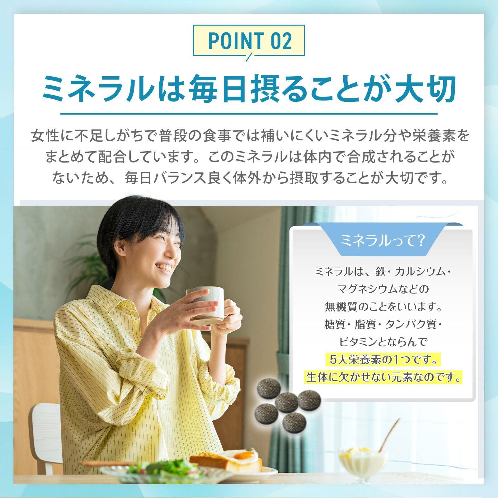 【女性に必要なミネラルをギュッと凝縮!】鉄分不足が気になる方へ。5大栄養素のうち特に摂取しづらく、女性に不足しがちな鉄・ミネラルやビタミンを1粒にギュッと凝縮しました。