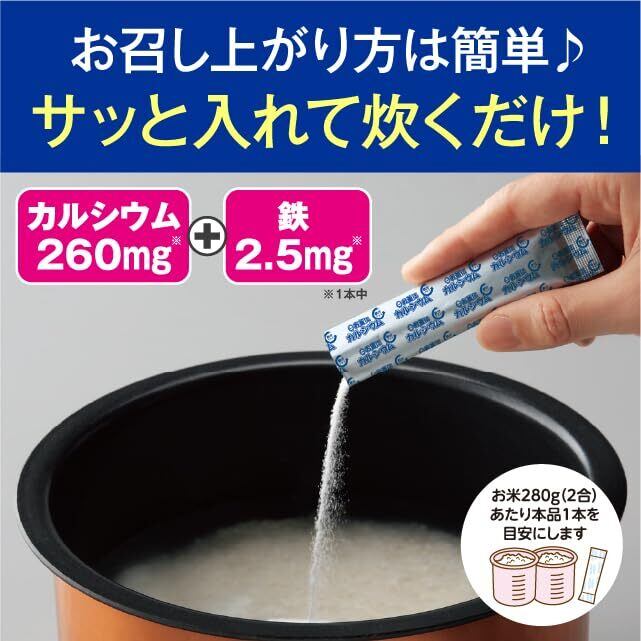 便利なスティックタイプ。お米2合に1本をサッと入れて炊くだけ。1本(2.05g)で、カルシウム260mgと鉄2.5mgが摂取できます。