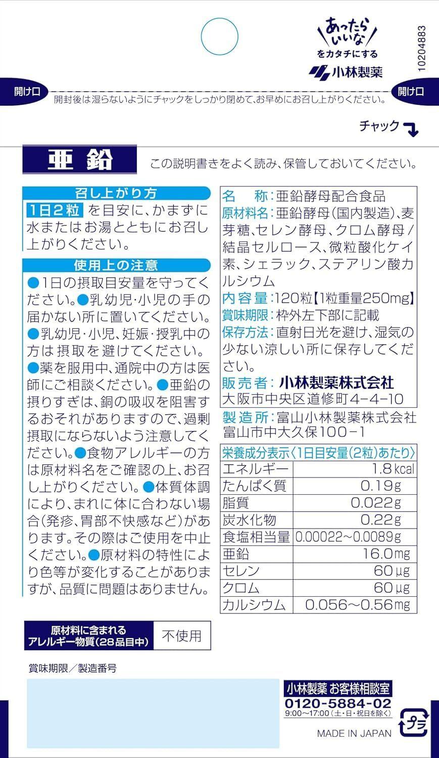 小林製薬の栄養補助食品 亜鉛 サプリ 亜鉛サプリメント zinc お徳用
