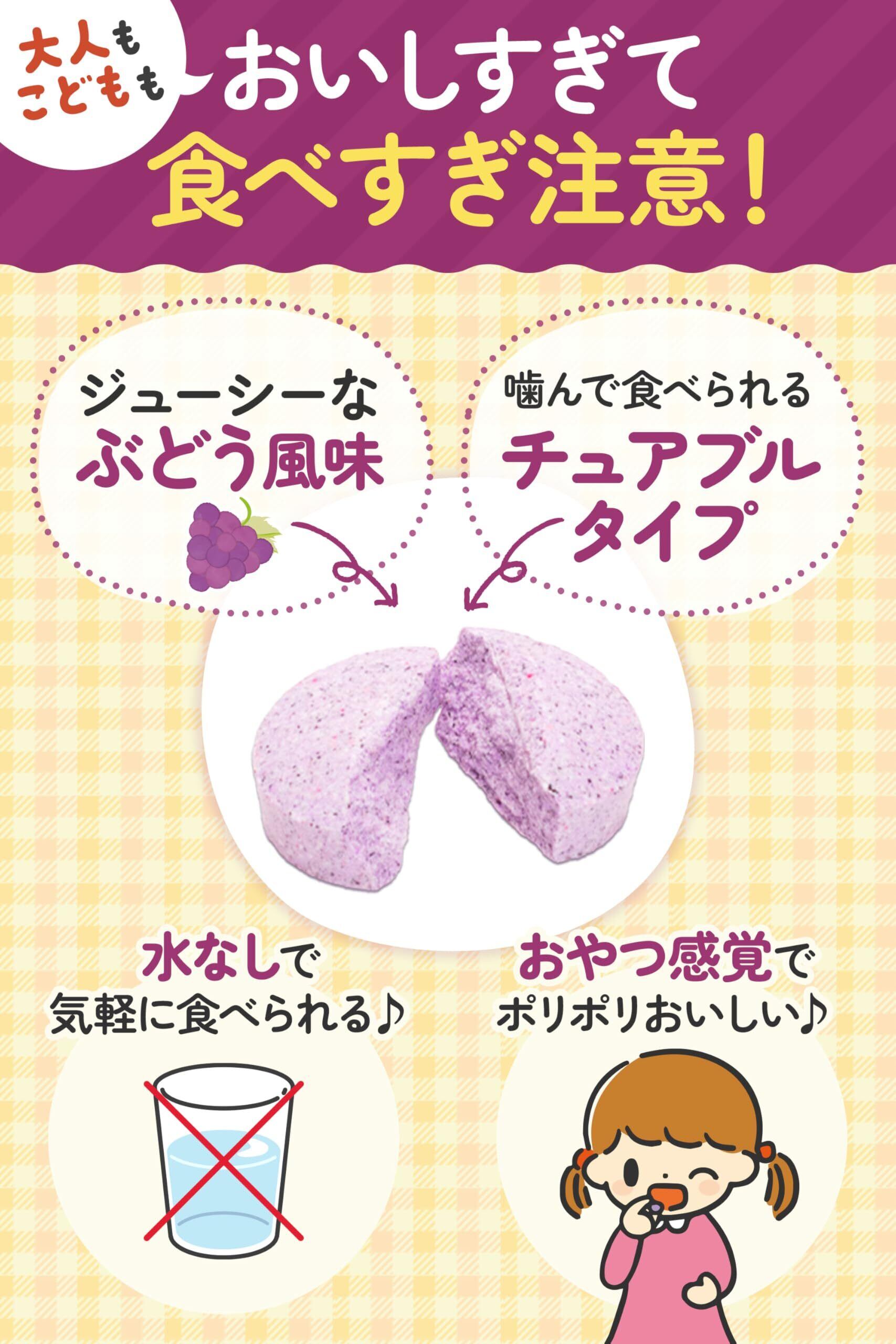 【味にもこだわりました】「子どもに毎日食べて貰える味」を目指し、甘くて食べやすいぶどう風味に仕上げました。