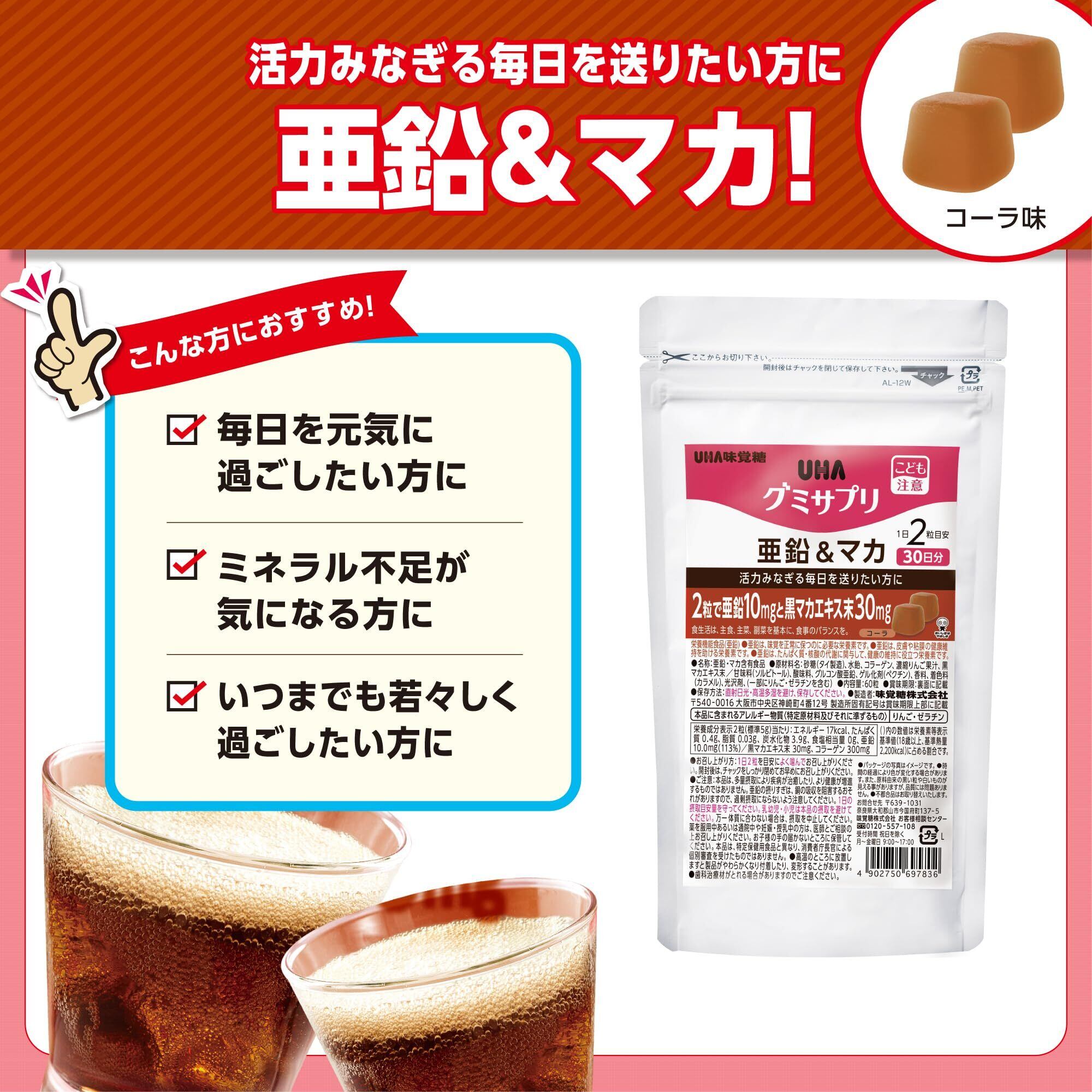 UHA味覚糖[公式] 2粒に黒マカエキス30mg配合 通販限定 グミサプリ 亜鉛&マカ 30日分 1袋あたり60粒 1日2粒 コーラ味 1袋