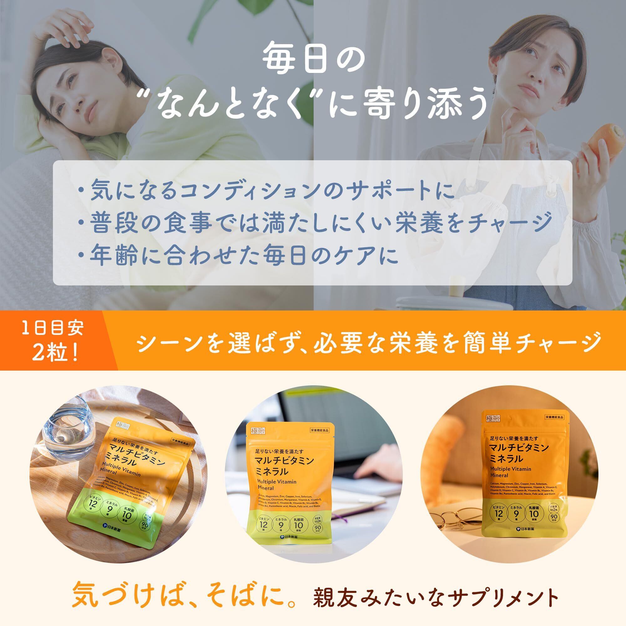 日本新薬 マルチビタミンミネラル(90日分 180粒)国内製造 GMP認定工場 厳選22成分 ビタミン 12種 ミネラル 9種 乳酸菌 1日必要量 100%