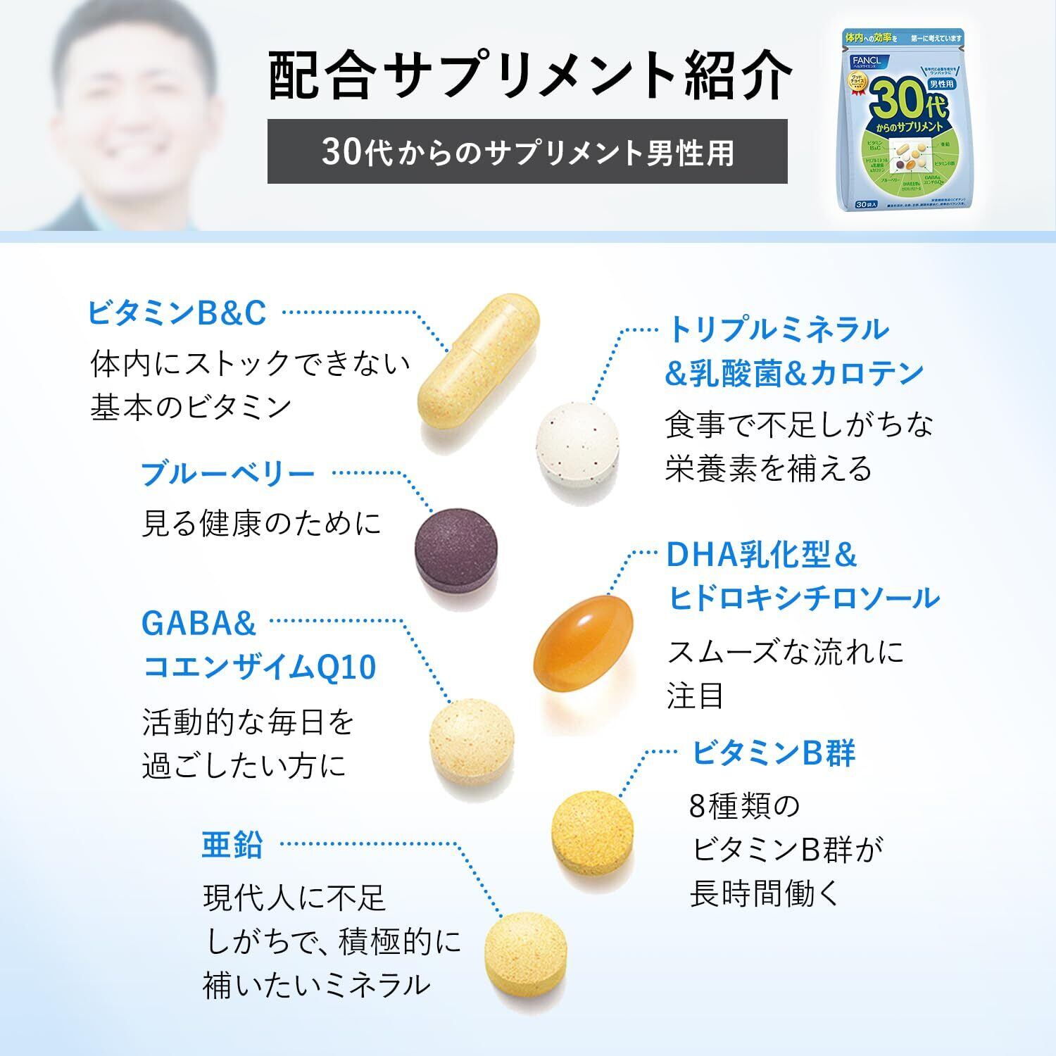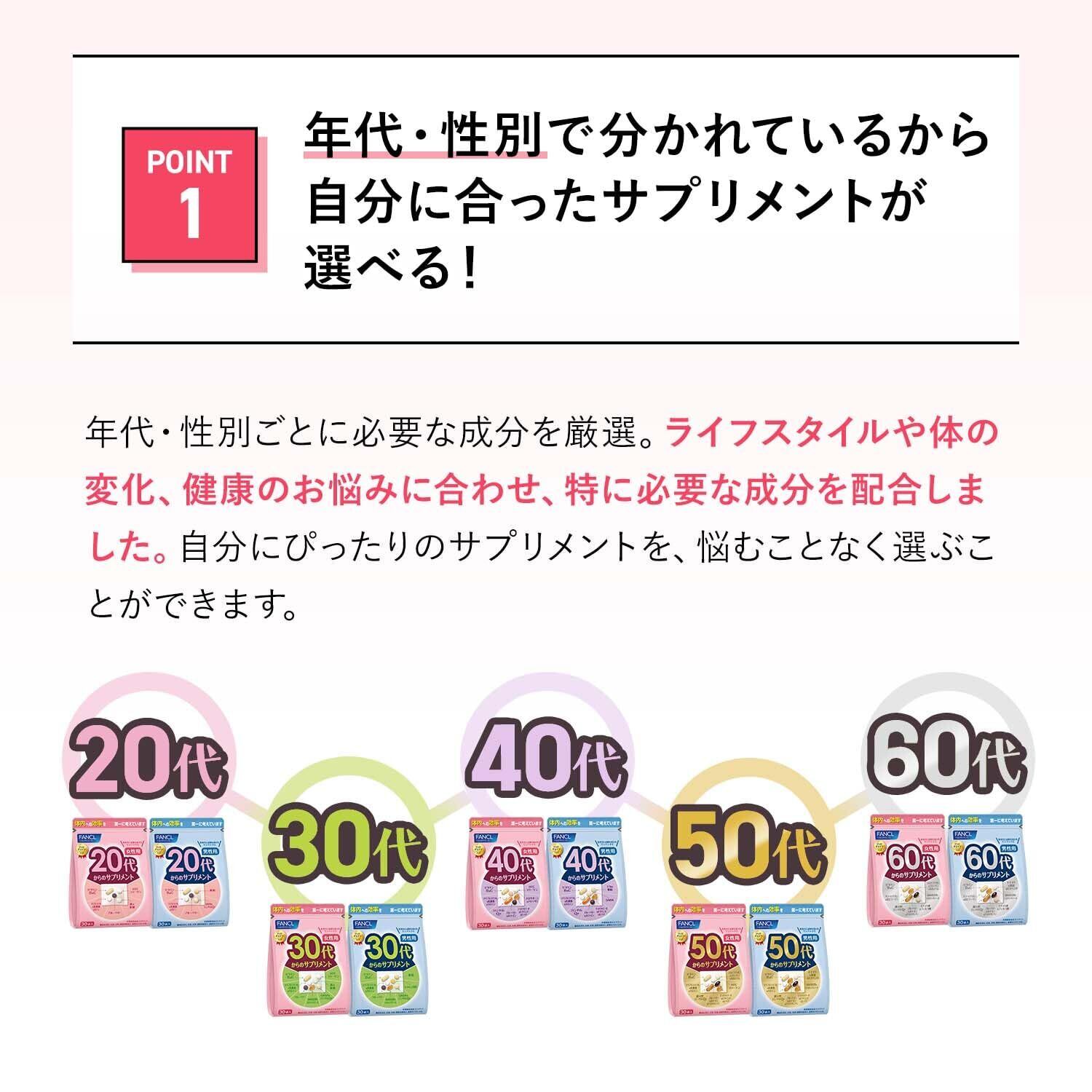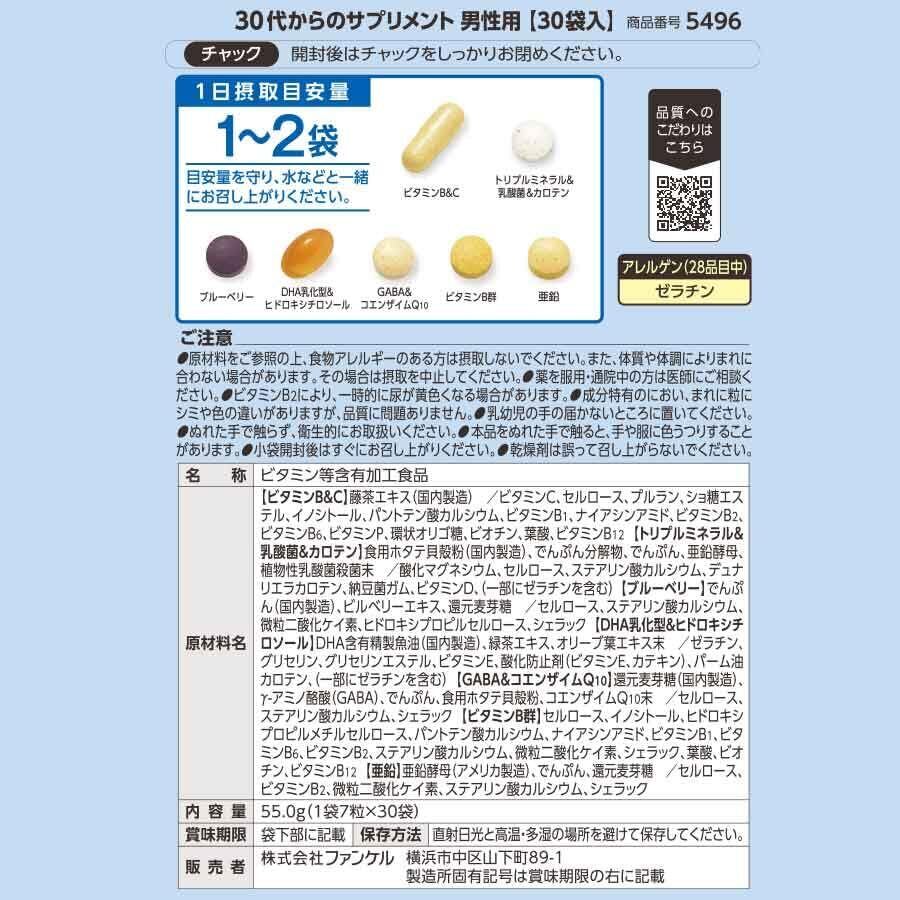 ファンケル (FANCL) 30代からのサプリメント男性用 15~30日分 (30袋) 年代 サプリ (ビタミンC/亜鉛/GABA) 個包装