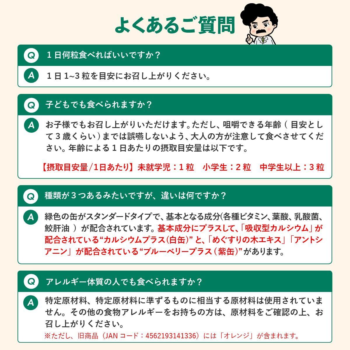 乳酸菌、葉酸、深海鮫肝油、ビタミンA.C.Dがバランスよく配合された栄養補助ドロップ。