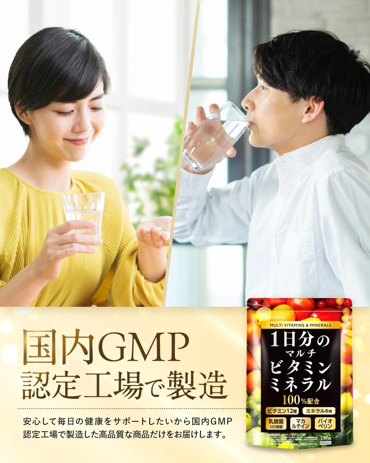 完全食TOKYO 1日分のマルチビタミン&ミネラル 1日分のビタミン12種 1日分のミネラル8種 大容量 180粒 約45日分 栄養機能食品(ビオチン、ビタミンC、鉄) マカ 亜鉛 ルテイン バイオペリン 乳酸菌350億個 1日分のビタミン&ミネラル 栄養機能食品 国内GMP製造 サプリメント