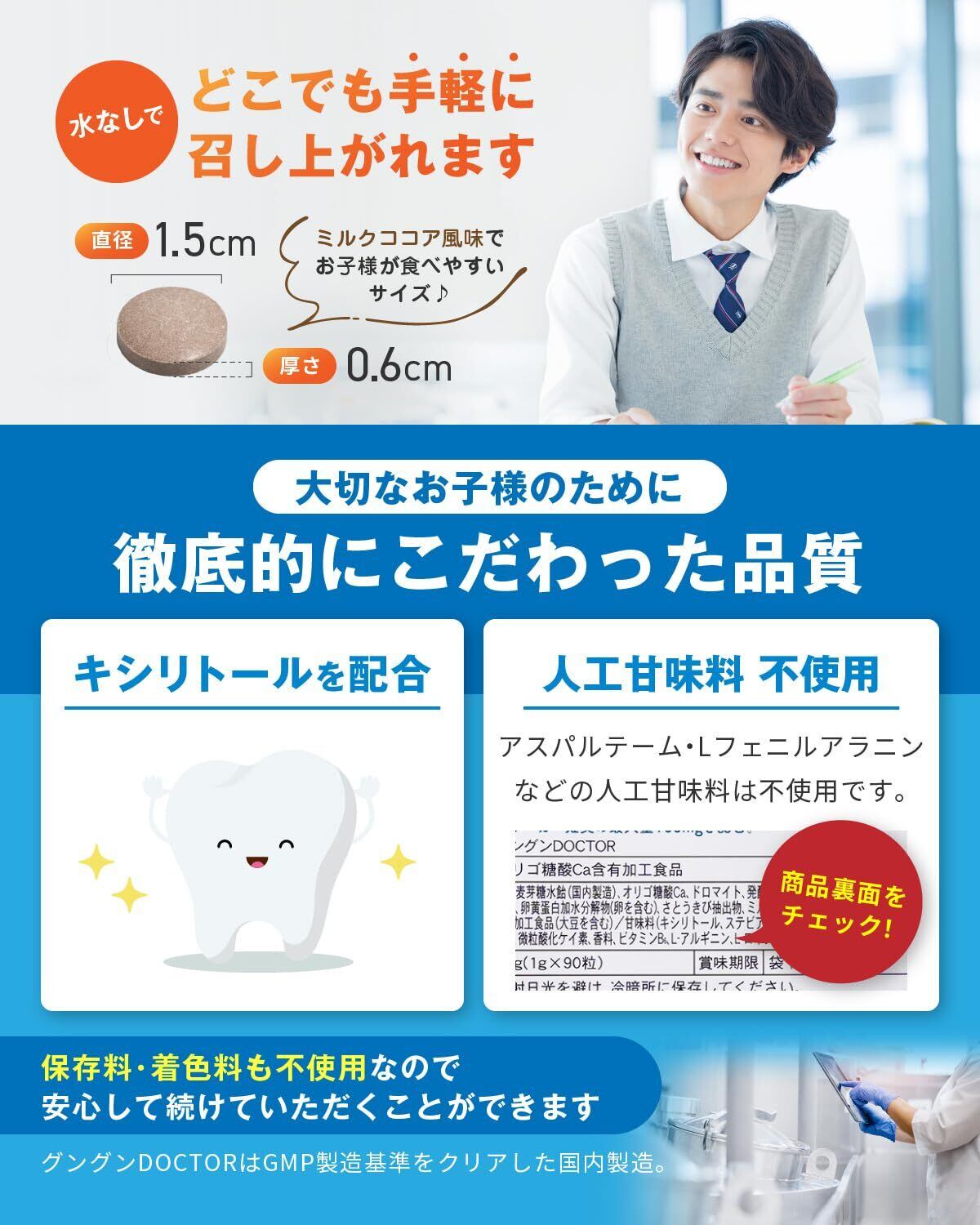 グングンDOCTOR 成長期の伸びをサポート 子供 成長 サプリ スポーツ カルシウム サプリメント ビタミン ボーンペップ アルギニン 鉄分 亜鉛 日本製 90粒 ミルクココア 人工甘味料不使用 | 毎日発送✿はなまる