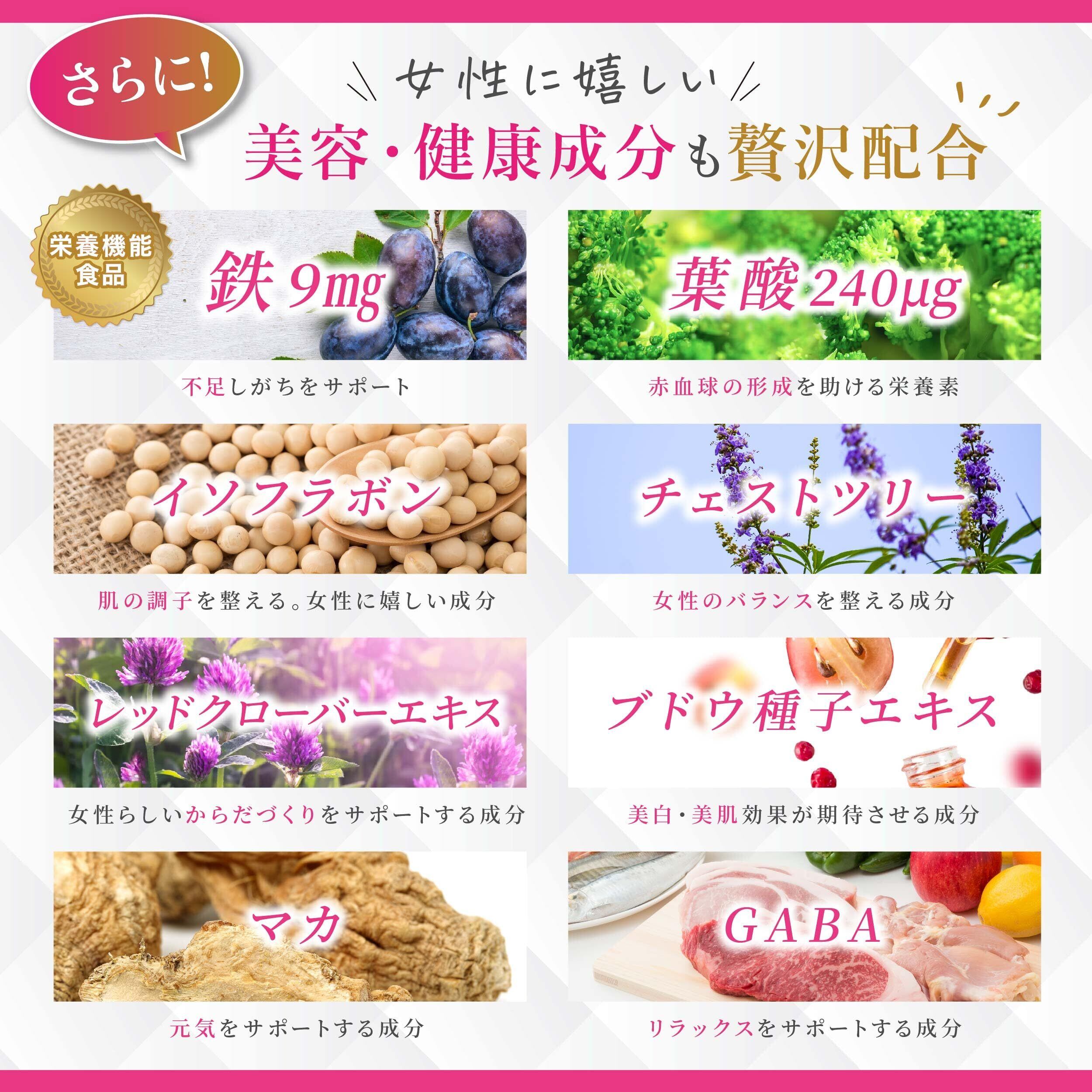 【女性に必要な鉄×葉酸】女性に大切は鉄分と葉酸をしっかり配合。キレイがみなぎるマルチビタミンplusの鉄は栄養機能食品です。