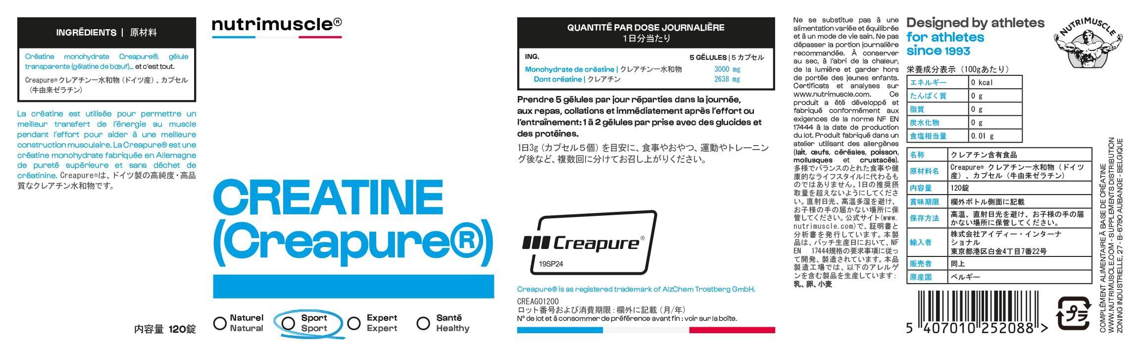 クレアチン モノハイドレート カプセル ニュートリミュスクル 120カプセル Nutrimuscle クレアピュア Creatine monohydrate Creapure capsule サプリ 純度99.99%以上 筋力トレーニング