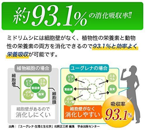 植物と動物両方の性質を持つ石垣産ユーグレナは、細胞壁がないため、その消化率は93.1%*を、他の素材に比べて群を抜いています。