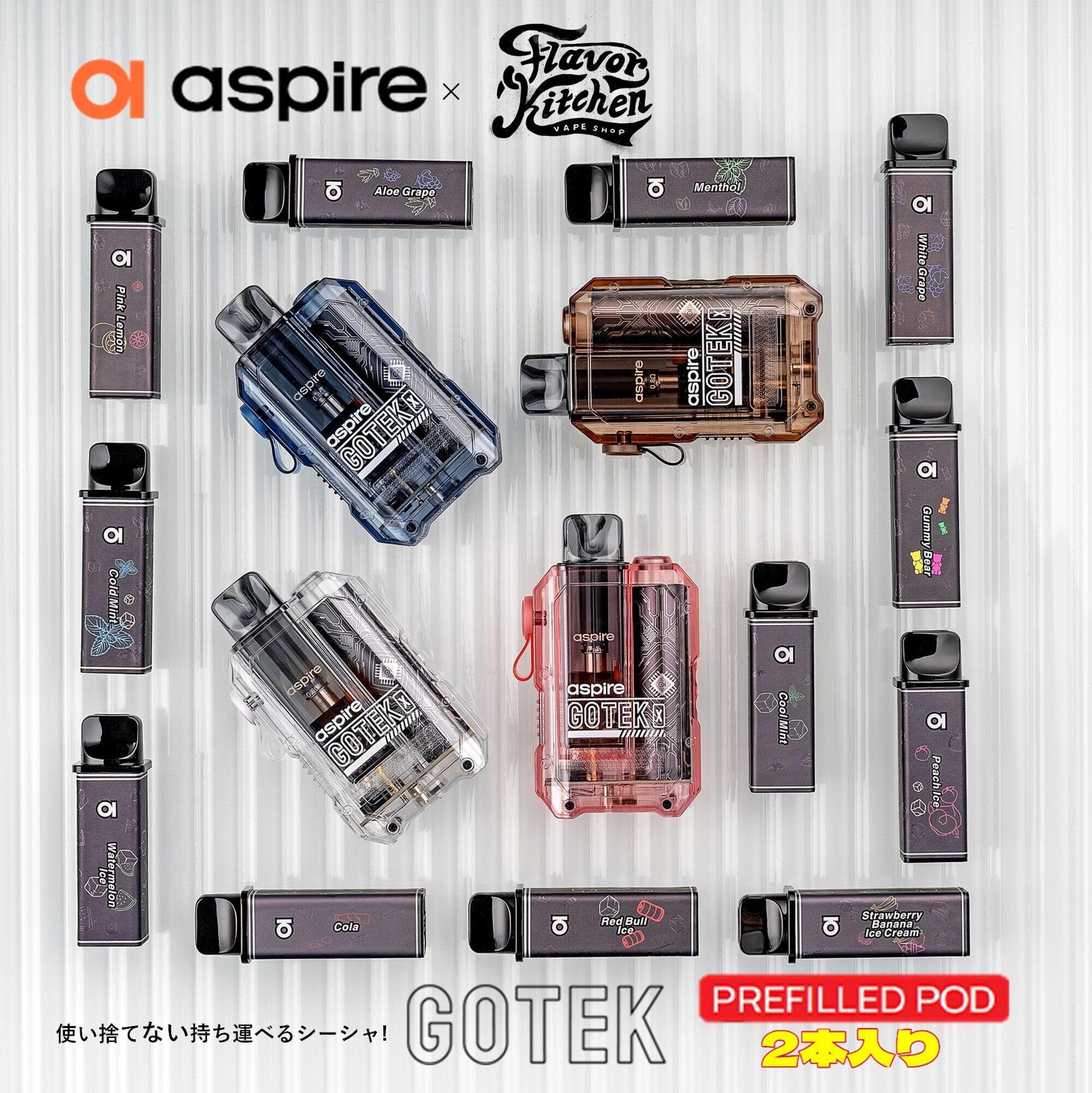 VAPE(ベイプ)業界を牽引するAspire(アスパイア)が生み出した新時代のVAPEデバイス【GOTEK】シリーズの交換用リキッド入りカードリッジ2個入りです。GOTEKシリーズ「GOTEK S」と「GOTEK X」に装着するだけで、そのまま使用できます。今はやりの「持ち運べるシーシャ」と呼ばれる使い捨てVAPEは本体ごと使い捨ててしまいますが、本製品はカートリッジ部分だけを交換して使用するのでコスパ抜群です。もちろんニコチンを含むリキッド等は一切付属しませんので安心して使用が可能です。