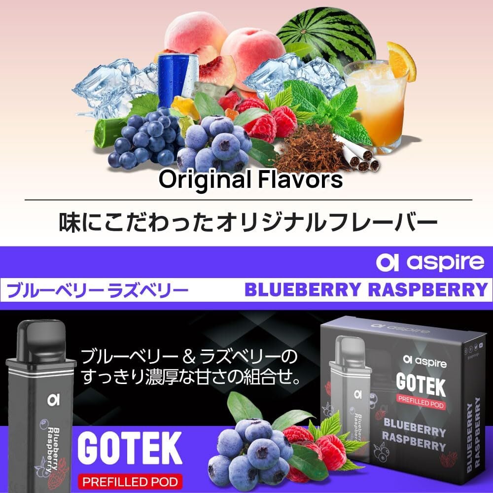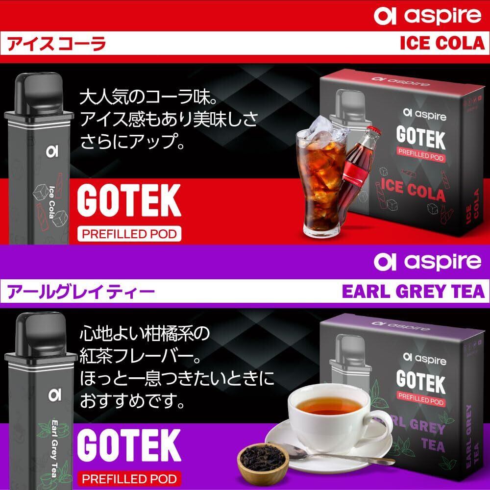 Favostix(ファボスティックス)やminican+(ミニカン プラス)など、大人気のPODタイプのVAPE(ベイプ)を発売しているAspire(アスパイア)ブランドの画期的なデバイスGOTEK シリーズの交換用 純正 POD リキッド入りカートリッジになります。大容量5mlリキッドPODを備えたGOTEKは頻繁なリキッド補充の煩わしさがなく、圧倒的なコストパフォーマンスを誇ります。ニコチンを含むリキッド等は一切付属しません。