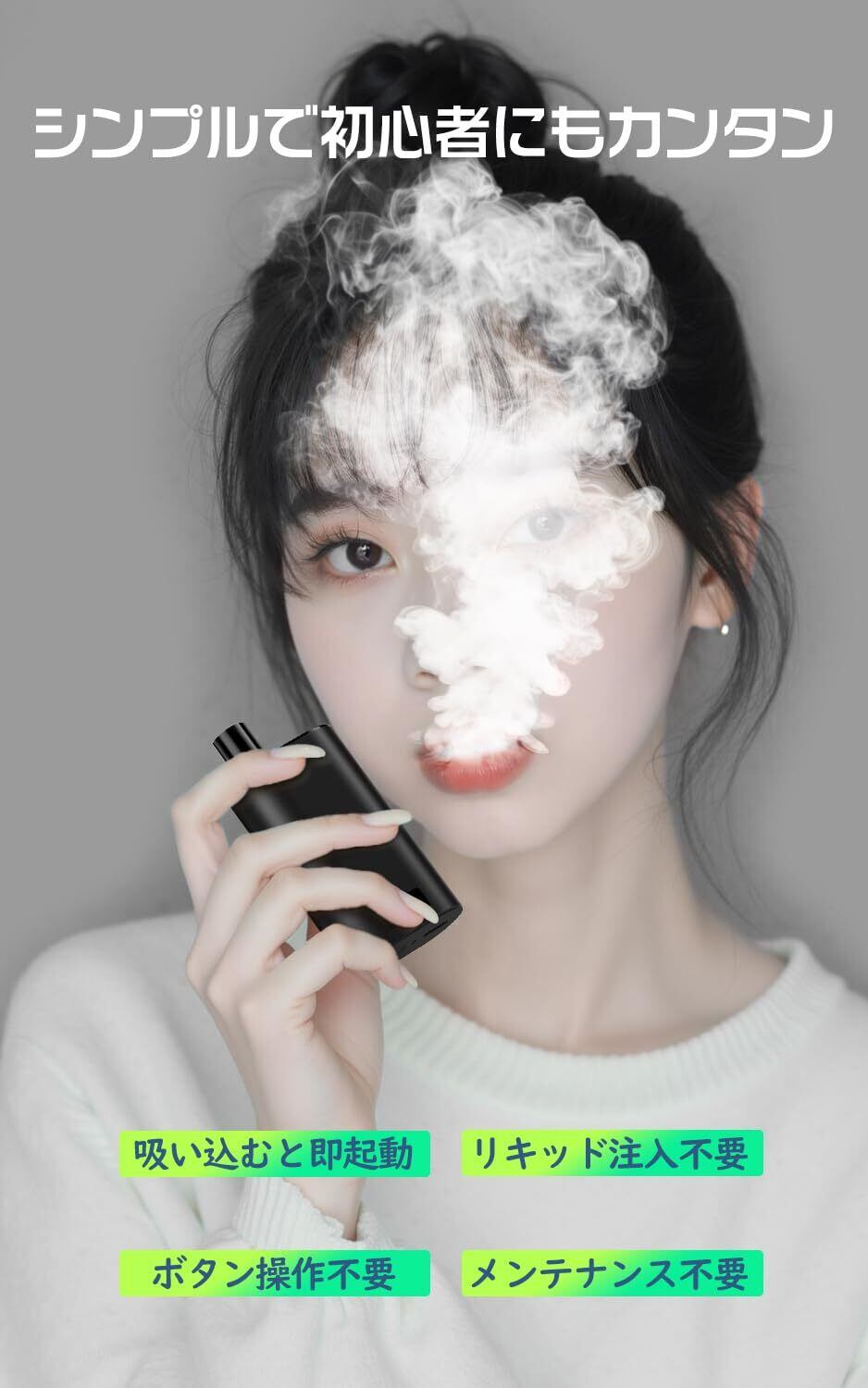 <ストレスなく禁煙>植物からエキスを抽出した天然の成分、ニコチン0、タール0、タバコ臭0、受動喫煙なし。コンパクトで持ち運びやすいし、どんな場所でもスマートに電子タバコを楽しむことができます。