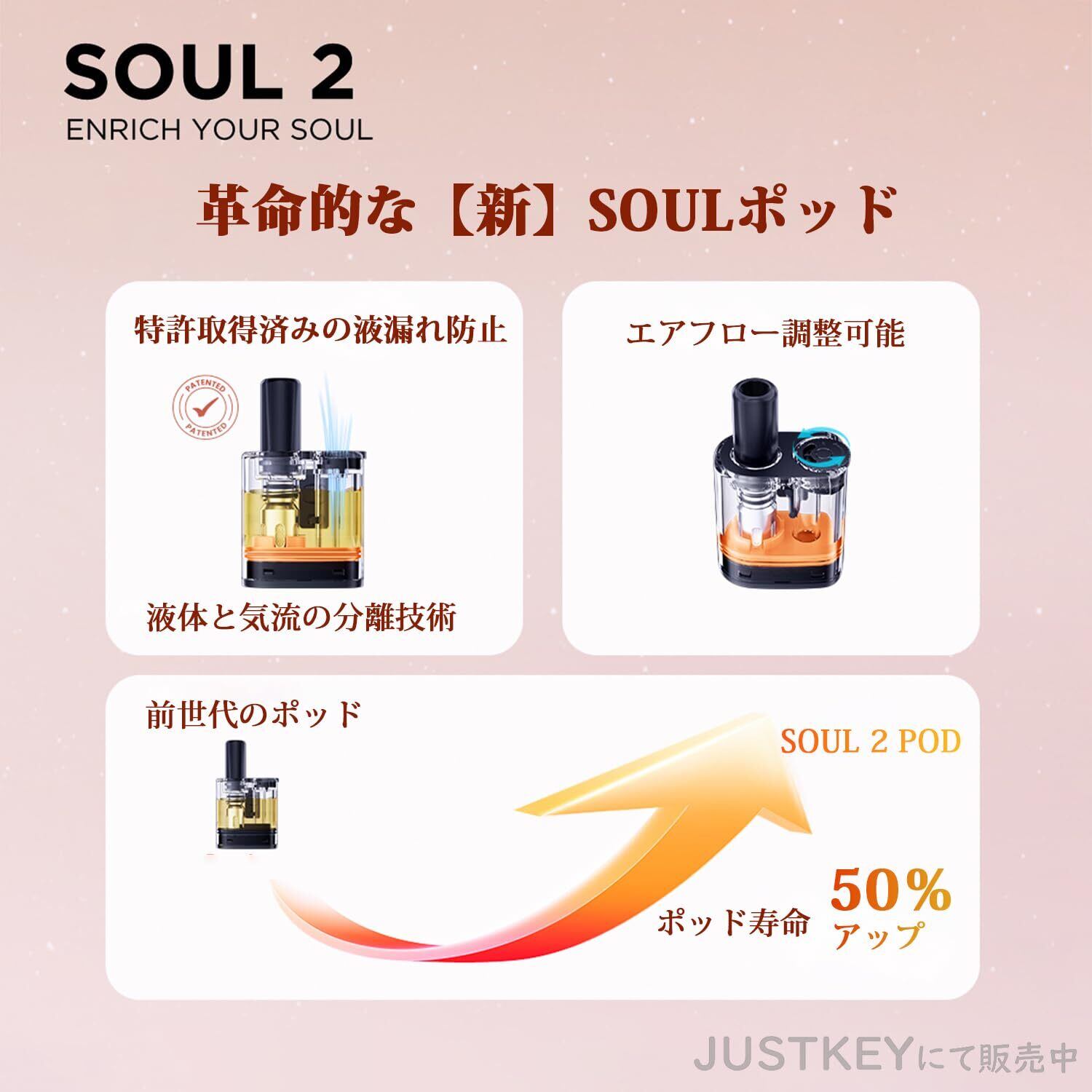 革命的な新しいSOUL ポッドは、液体気流分離テクノロジーを採用して、取得済みの漏れ防止デザインで優れたフレーバーと繊細なベイピング体験を実現します。ポッド寿命も50%アップします。