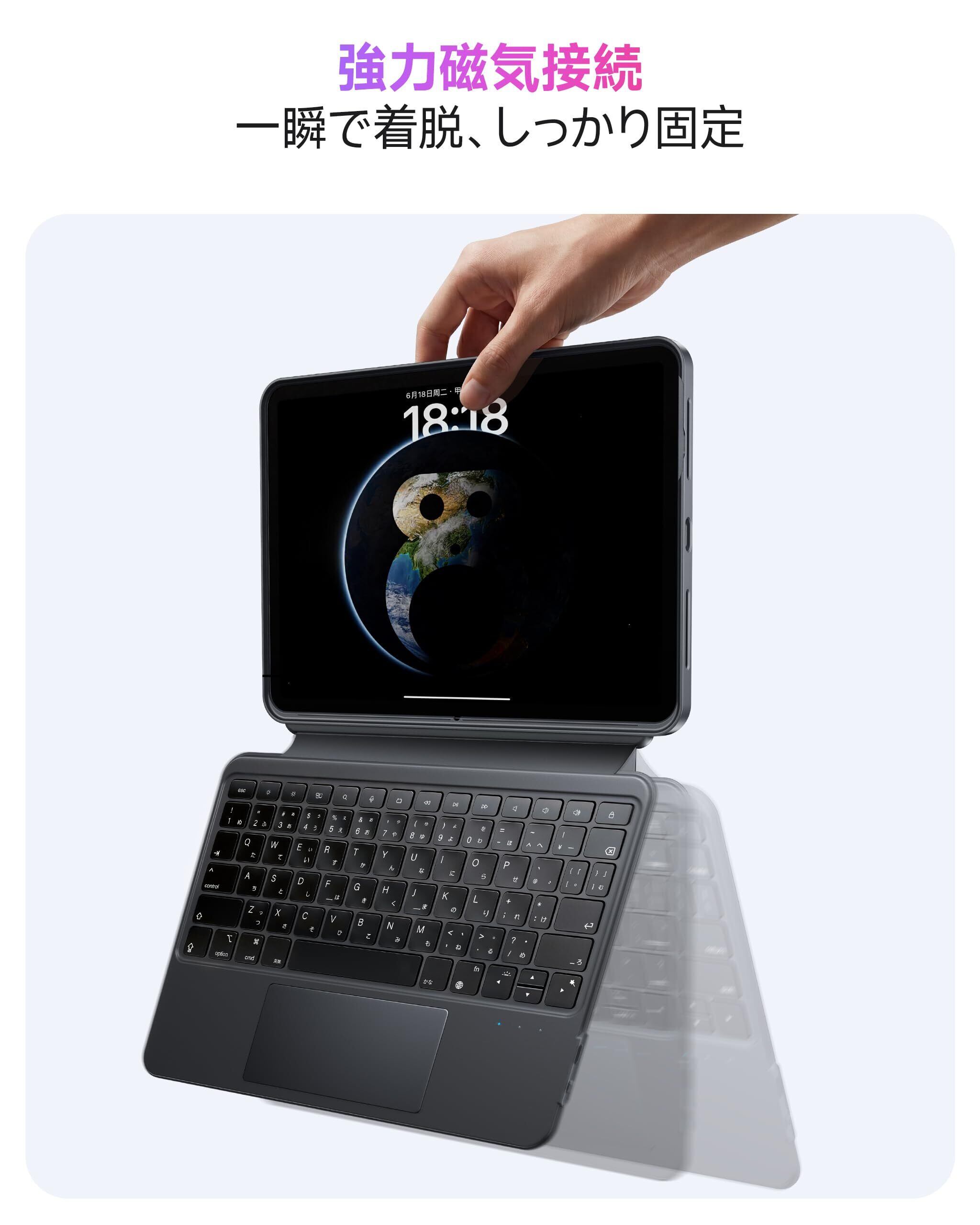 HOU対応 iPad 11インチA16 2025/10世代 ケース キーボード、iPad第11/10世代用回転式&着脱式キーボードケース、伸縮性ペンホルダー、完全保護カバー、7色バックライト、マルチタッチトラックパッド、日本語配列 | 毎日発送✿はなまる
