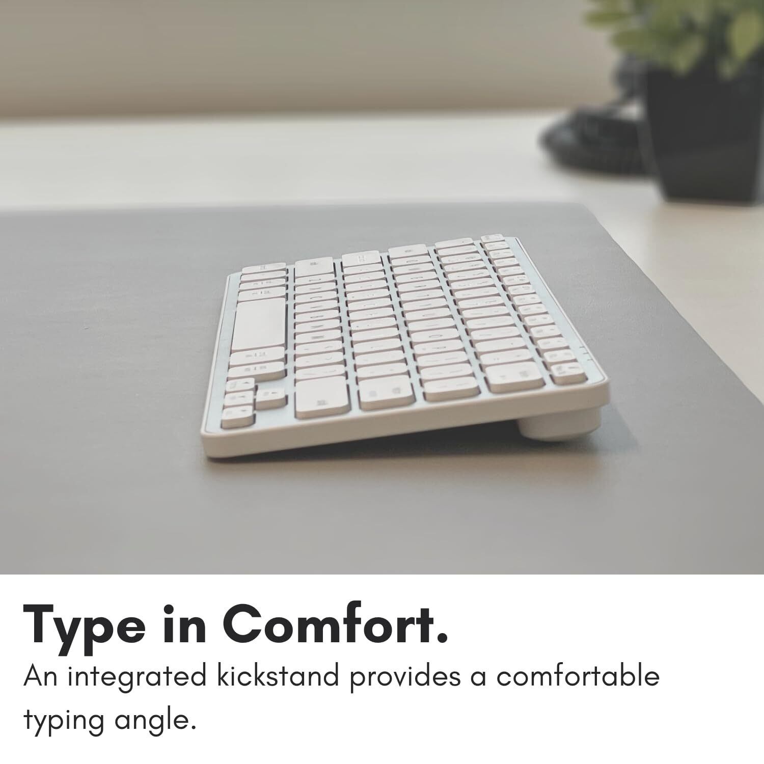 【快適で人間工学に基づいたタイピング】78キーのレイアウトと13個のショートカットキーを搭載したコンパクトなワイヤレスキーボードは、 高速シザー式フレクサーの反応性と静音性をきっと気に入っていただけます。 薄型キーキャップをしっかり支えるこのキーボードは、Apple製品にもWindows PCにも対応しています。 スペースを節約しながらあらゆる作業をこなすことができます。さらに、組み込み式のキックスタンドも搭載しています。