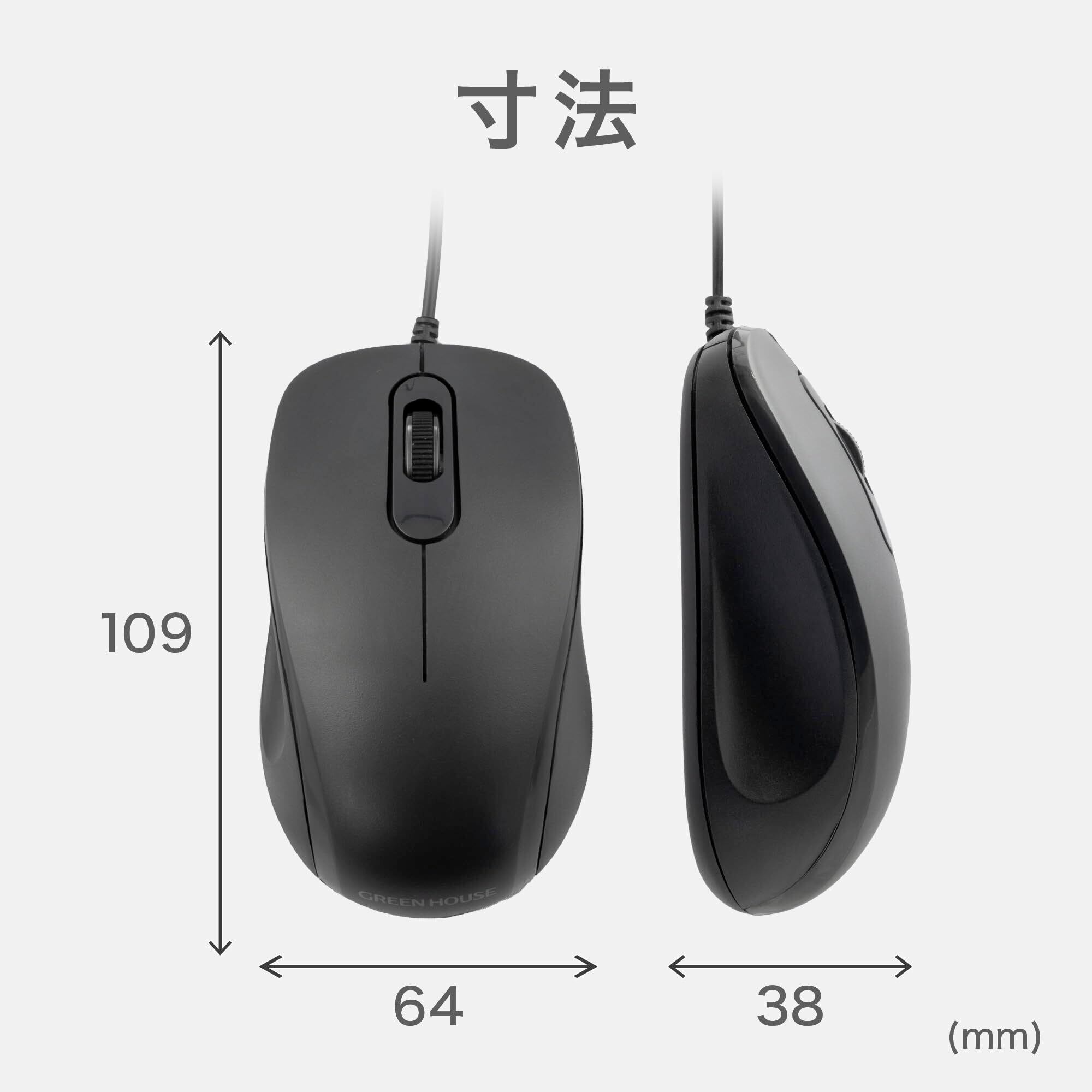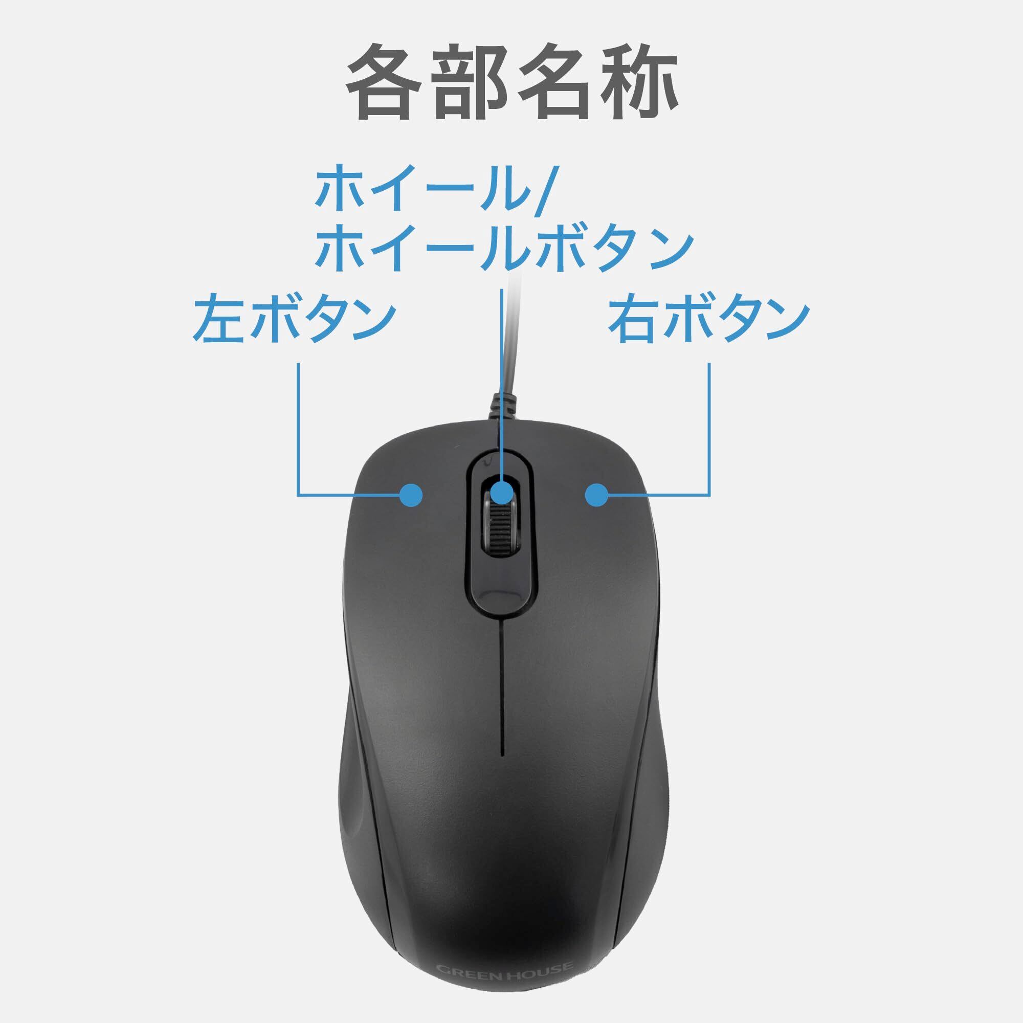 グリーンハウス 有線マウス 静音 USB接続するだけ 簡単接続 電池/充電不要 小型 GH-MUDQOB-BK