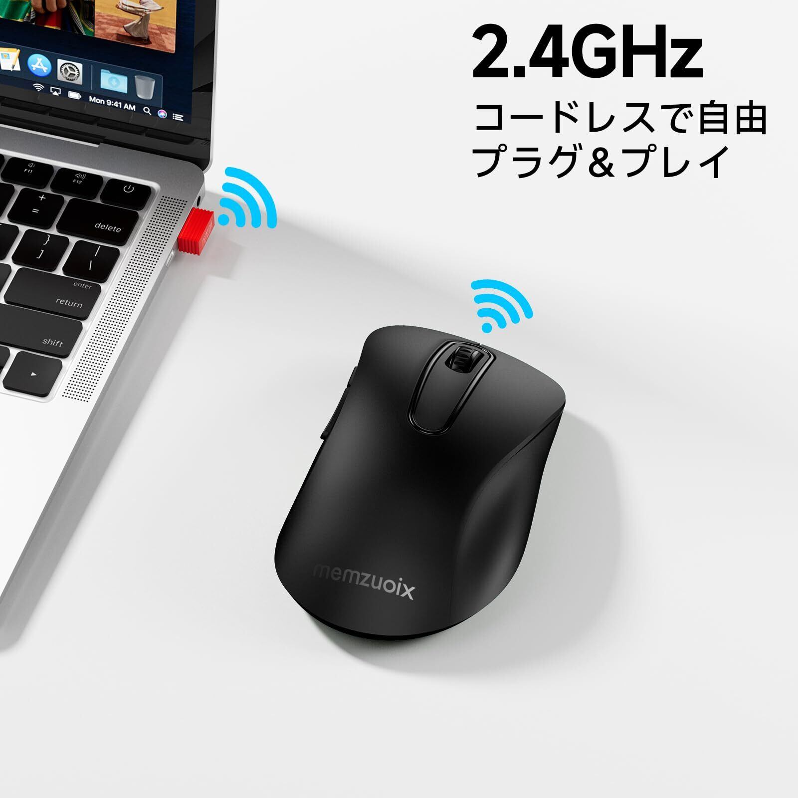 【設定が簡単ですぐ使える。安定した無線接続でデスクもすっきり】付属のUSBレシーバーをパソコンに差し込むだけで、ドライバーインストールなしですぐに使用開始。面倒な設定は一切ありません。2.4GHz無線技術により、約10メートル先までノイズに強い安定した接続を実現。コードが邪ばにならないため、デスク周りを整理整頓できます。レシーバーはマウス本体に収納可能で、持ち運びに便利です